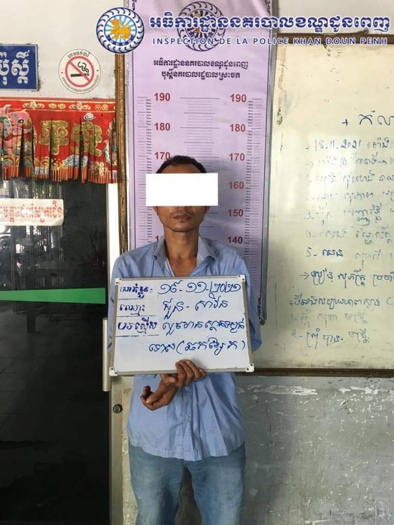 ភ្នំពេញ ៖ កម្លាំងជំនាញផ្នែកយុត្តិធម៌ និងកម្លាំងប៉ុស្តិ៍នគរបាលរដ្ឋបាលស្រះចក នៃអធិការដ្ឋាននគរបាលខណ្ឌដូនពេញ បង្រ្កាបឃាត់ខ្លួនជនសង្ស័យម្នាក់ ករណី អំពើលួចមានស្ថានទម្ងន់ទោស (ឆក់ខ្សែក) ក្រោយពេលដែលជនរងគ្រោះ បានទៅរកនារីរកស៊ីផ្លូវភេទនៅម្តុំវត្តភ្នំ មកដេកនៅផ្ទះសំណាក់មិនចាំយ៉ីហោម្ដុំមុខវិហារឥស្លាម ហើយនារីរកស៊ីផ្លូវភេទនោះ បានរត់ចេញពីបន្ទប់ និងយកកាបូបលុយរបស់ជនរងគ្រោះចេញទៅជាមួយ ពេលនោះជនរងគ្រោះនិងមិត្តភ័ក្រ្តក៏បាននាំគ្នាដេញតាមដល់មុខវិហារឥស្លាម ប៉ុន្ដែមិនទាន់ ក៏បានជួបជនសង្ស័យ និងបក្ខពួក ក៏បាននាំគ្នាធ្វើសកម្មភាពឆក់ខ្សែក របស់ជនរងគ្រោះបានសម្រេច ។