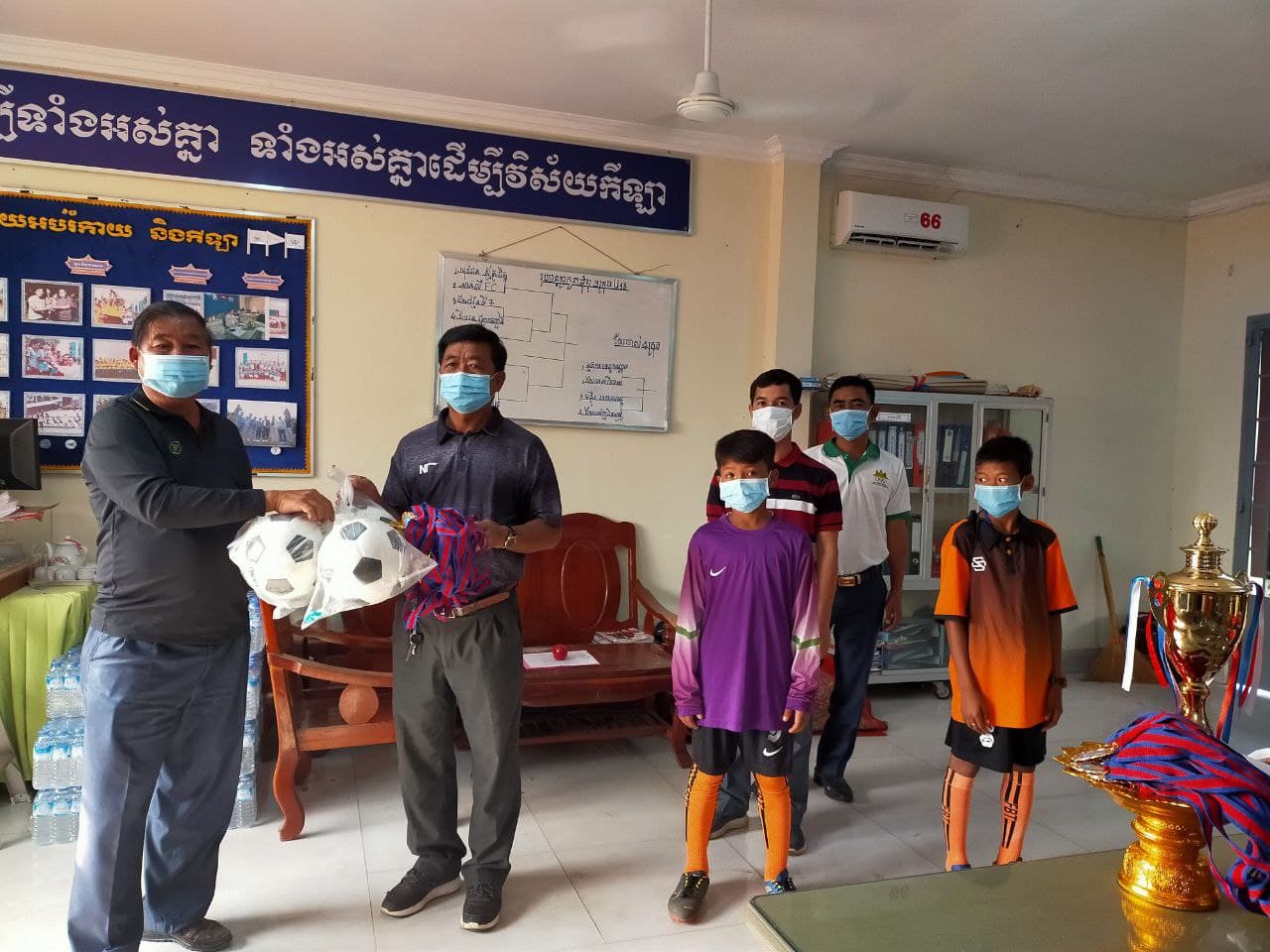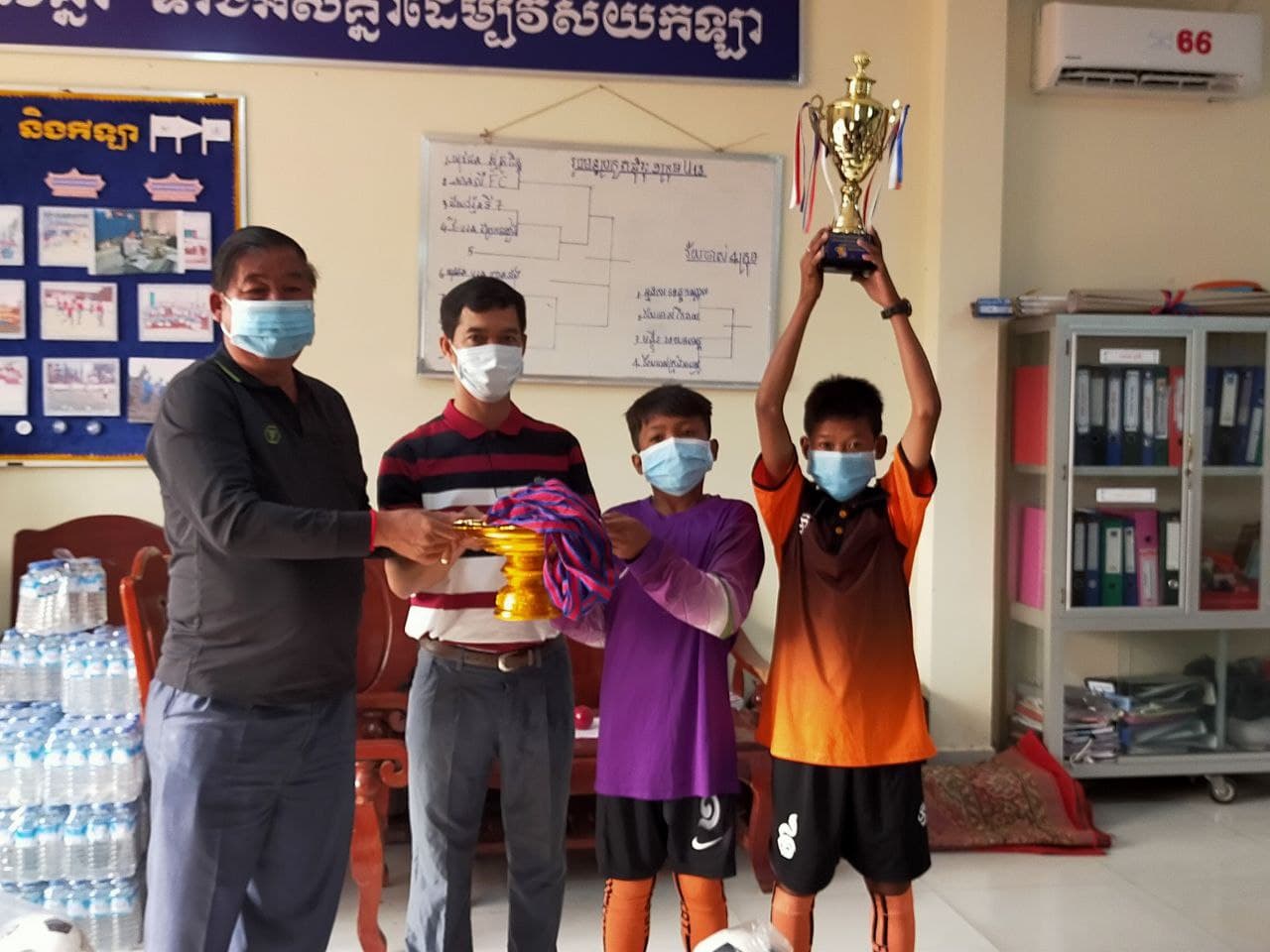 ​លោក ពៅ វណ្ណា ប្រធានការិយាល័យ​អប់រំ​កាយ និង​កីឡា បាន​និយាយថា ការប្រគល់​ពាន និង​មេដាយ​ជូន​ក្រុម​កីឡាករ​-​កីឡាការិនី​កុមារ​ឆ្នាំនេះ​មិនមាន​ការរៀបចំ​ផ្លូវការ​ឡើយ ដោយ​យើង​ប្រគល់​តាម​វិញ្ញាសា​នីមួយៗ​តាម​អ្វីដែល​ធ្វើទៅបាន​។ វិញ្ញាសា​បាល់ទាត់​កុមារា មេដាយមាស​បាន​លើ​ក្រុម​ការិយាល័យ​អប់រំ​កាយ និង​កីឡា ស្រុក​ខ្សាច់កណ្តាល មេដាយប្រាក់ បាន​លើ​ក្រុម​ការិយាល័យ​អប់រំ​កាយ និង​កីឡា​ក្រុង​តាខ្មៅ និង​មេដាយសំរិទ្ធ បាន​លើ​ក្រុម​ការិយាល័យ​អប់រំ​កាយ និង​កីឡា​ស្រុក​កោះធំ​។