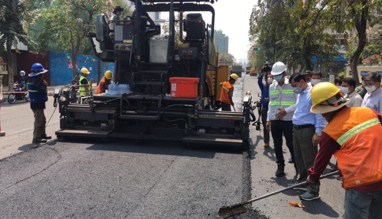 ភ្នំពេញ៖ គម្រោងជួសជុល មហាវិថីព្រះនរោត្ដមដែលខូចខាតដោយទឺកជំនន់របស់រដ្ឋបាលរាជធានីភ្នំពេញ ចាប់ពីរមនីយដ្ថរមណីយដ្ឋានវត្តភ្នំរហូតដល់វិមានឯករាជ្យបានឈានដល់ការអ៊ុតកៅស៊ូACកំរាស់៥សង់ទីម៉ែត្រហើយ ក្រោយពីបានជួសជុលគ្រលុកសំបុកមាន់និងធ្វើគ្រឹះរួច។