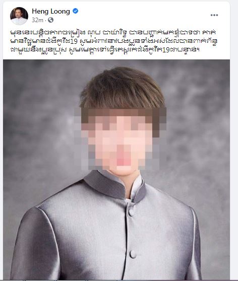 តារាចម្រៀងដ៏ល្បីលោក ណុប បាយ៉ារិទ្ធ ប្រកាសតាម Facebook ថា «លោកបានឆ្លងជំងឺ Covid-19»