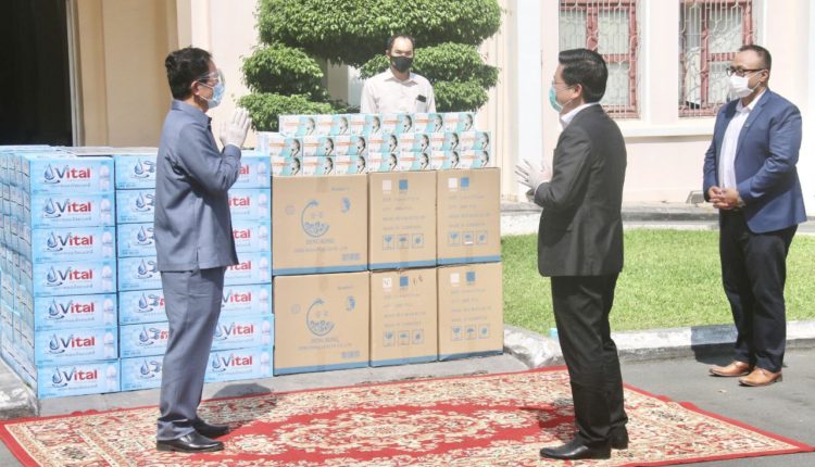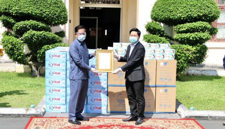ភ្នំពេញ៖ ថវិកាចំនួន៤០លានរៀល ម៉ាស៥ម៉ឺនម៉ាសនិងទឹកបរិសុទ្ធជាង១ម៉ឺនដប ត្រូវបានក្រុមហ៊ុនឯកជនមួយ ប្រគល់ជូនមករដ្ឋបាលរាជធានីភ្នំពេញ ដើម្បីចូលរួមចំណែកក្នុងការបង្ការនិងទប់ស្កាត់ជំងឺកូវីដ១៩ ខណៈដែរជំងឺនេះ បាននិងកំពុងរីករាលដាលចូលក្នុងសហគមន៍ជាថ្មី ក្នុងព្រឹត្តិការណ៍សហគមន៍២០កុម្ភៈនេះ។