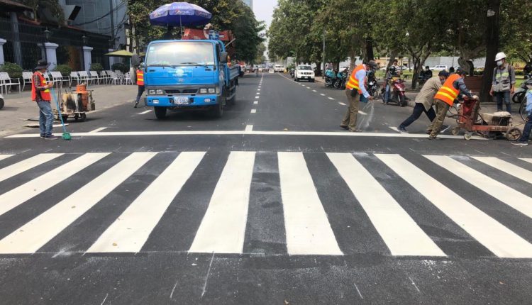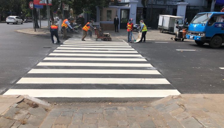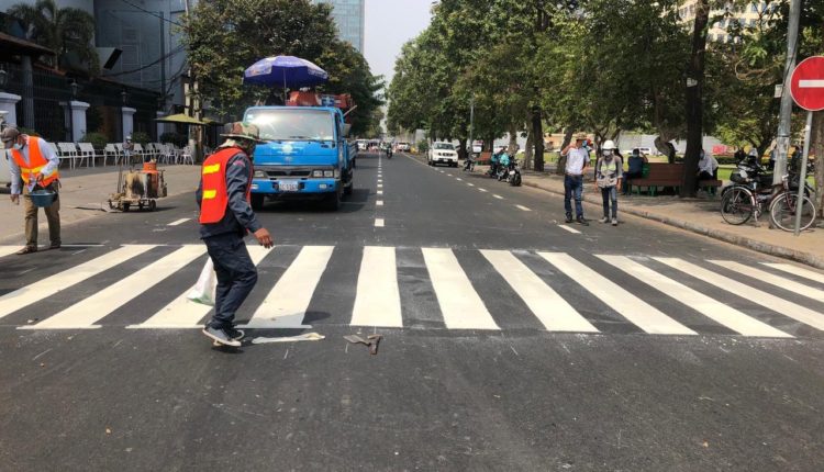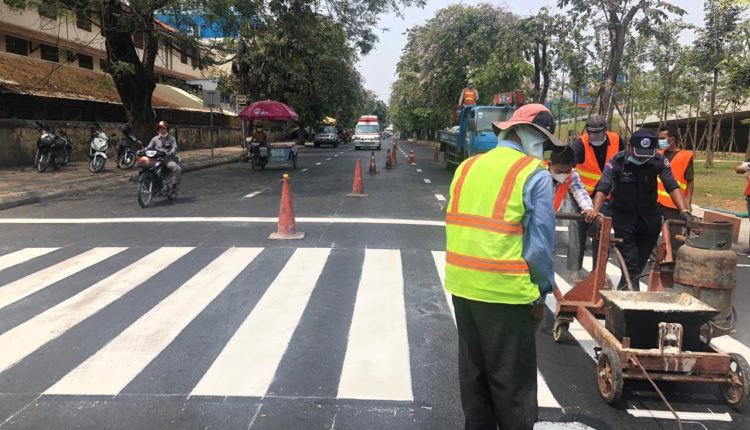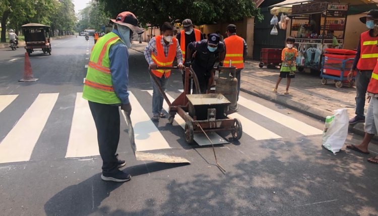 រដ្ឋបាលរាជធានីផ្តើម អ៊ុតគំនូសសញ្ញាចរាចរណ៍ នៅលើកំណាត់ផ្លូវដែលបានអ៊ុតកៅស៊ូAC រួចរាល់នៅក្នុងខណ្ឌដូនពេញ