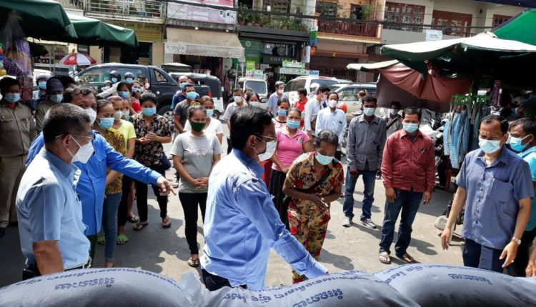 ភ្នំពេញ ៖ បងប្អូនអាជីវករ លក់តាមកញ្ច្រែងល្អី នៅផ្សារអូឡាំពិក កម្មករស៊ីនទ្រីសំអាតផ្សារ អ្នករត់រីម៉កកង់បី ម៉ូតូឌុបចំនួន៧៣នាក់ ដែលមានជីវភាពខ្វះខាត ក្នុងគ្រួសារត្រូវបានគណៈកម្មការផ្សារផ្សារអូឡាំពិក នាំដោយអង្ករ របស់សម្តេតេជោ ហ៊ុន សែន នាយករដ្ឋមន្ត្រីនៃព្រះរាជាណាចក្រកម្ពុជា តាមរយៈ លោក ឃួង ស្រេង អភិបាលនៃគណ:អភិបាលរាជធានីភ្នំពេញ យកទៅប្រគល់ជូន ដើម្បីរំលែកការលំបាក ខណៈដែលជម្ងឺកូវីដ–១៩កំពុងរីករាលដាលនៅក្នុងរាជធានីភ្នំពេញ។