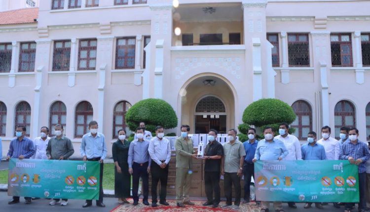 ជាក់ស្តែងថ្ងៃទី៣០ ខែមីនា ឆ្នាំ២០២១នេះ លោក ឃួង ស្រេង អភិបាលរាជធានីភ្នំពេញ បានផ្តល់ធុងបាញ់ថ្នាំសម្លាប់មេរោគ និងទឹកថ្នាំ ព្រមទាំងថវិកាមួយចំនួនជូនដល់ខណ្ឌទាំង១៤ ក្នុងរាជធានីភ្នំពេញ ដើម្បីធ្វើសកម្មភាព ក្នុងការបង្ការនិងទប់ស្កាត់នូវជំងឺកូវីដ១៩ ក្នុងព្រឹត្តិការណ៍សហគមន៍២០កុម្ភៈនេះ