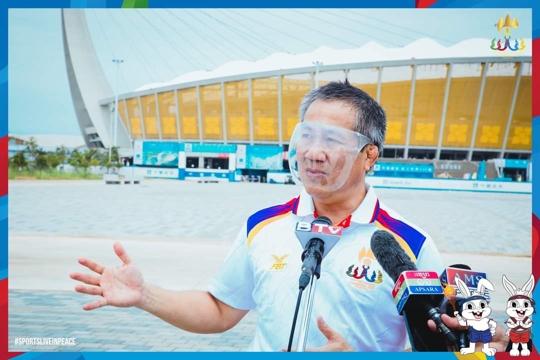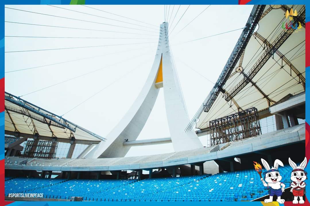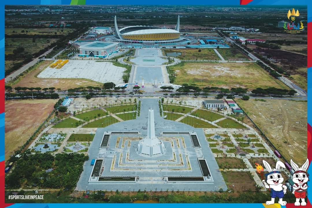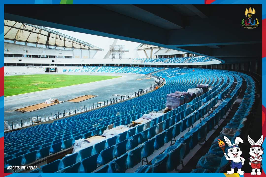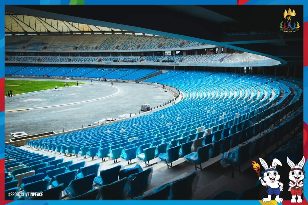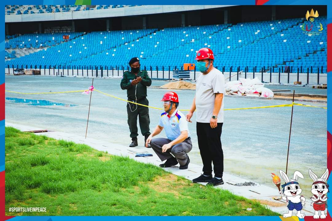 ឯកឧត្តម វ៉ាត់ ចំរើន អគ្គលេខាធិការ គណៈកម្មាធិការជាតិរៀបចំការប្រកួតកីឡាអាស៊ីអាគ្នេយ៍ លើកទី៣២ ឆ្នាំ២០២៣ (CAMSOC) ថ្លែងនៅថ្ងៃទី៣ ខែមេសា ឆ្នាំ២០២១ ក្នុងឱកាសចុះពិនិត្យមើលការសាងសង់កីឡដ្ឋានធំនេះ ដោយដំណើរការសាងសង់នៅតែបន្តធ្វើជារៀងរាល់ថ្ងៃដោយរលូន បើទោះបីជាកម្ពុជាកំពុងស្ថិតនៅក្នុងដំណាក់កាលទប់ស្កាត់វិបត្តិជំងឺកូវីដ-១៩ព្រឹត្តិការណ៍សហគមន៍២០កុម្ភៈយ៉ាងណាក្តី ក៏យន្តការរដ្ឋបាល យន្តការបច្ចេកទេស ការត្រួតពិនិត្យតាមដានវឌ្ឍនភាពការងារសាងសង់ហេដ្ឋារចនាសម្ព័ន្ធកីឡា រួមទាំងការងារហ្វឹកហាត់ គម្រោងផែនការត្រៀមឆ្ពោះទៅទទួលធ្វើម្ចាស់ផ្ទះ ស៊ីហ្គេម លើកទី៣២ ឆ្នាំ២០២៣ នៅតែបន្តធ្វើជាប់ជាប្រចំាជានិច្ច។