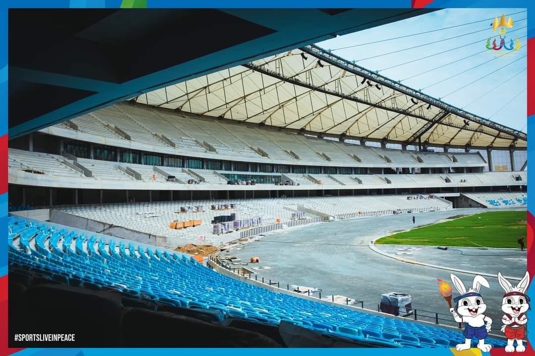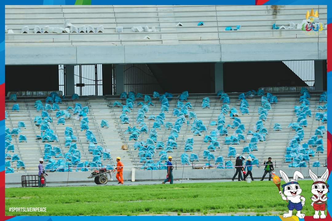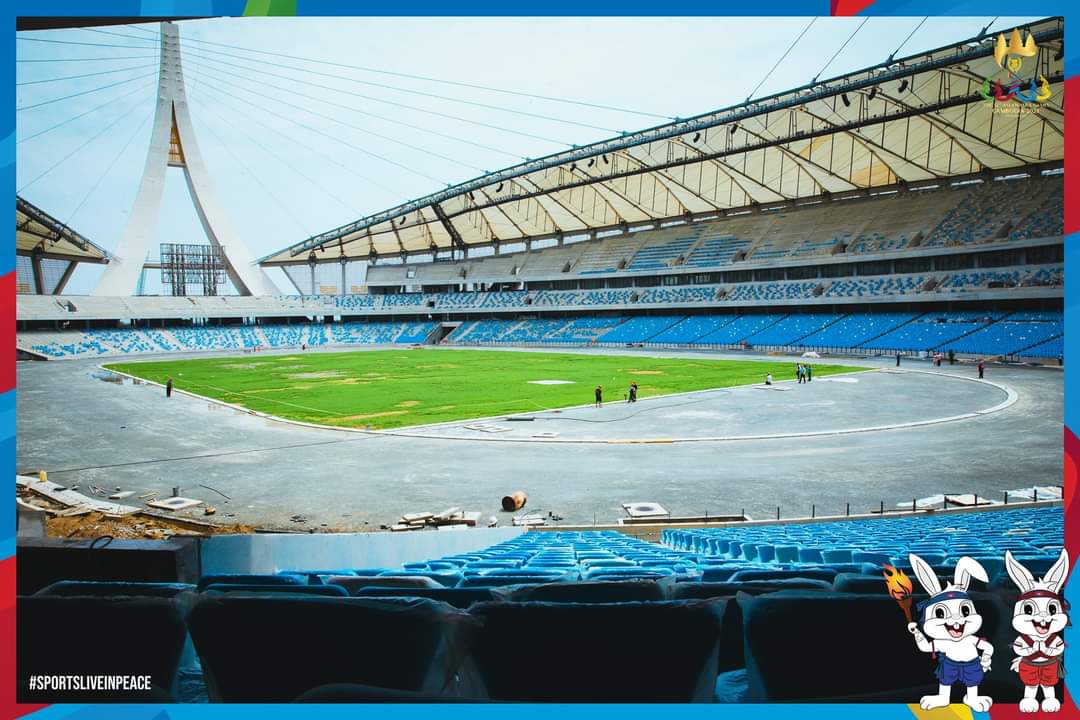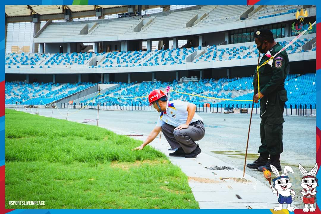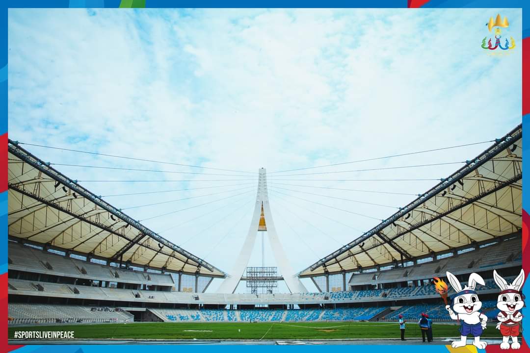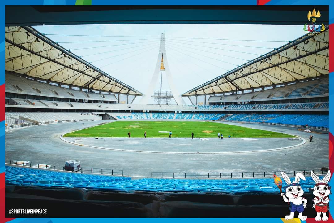ឯកឧត្តម វ៉ាត់ ចំរើន អគ្គលេខាធិការ គណៈកម្មាធិការជាតិរៀបចំការប្រកួតកីឡាអាស៊ីអាគ្នេយ៍ លើកទី៣២ ឆ្នាំ២០២៣ (CAMSOC) ថ្លែងនៅថ្ងៃទី៣ ខែមេសា ឆ្នាំ២០២១ ក្នុងឱកាសចុះពិនិត្យមើលការសាងសង់កីឡដ្ឋានធំនេះ ដោយដំណើរការសាងសង់នៅតែបន្តធ្វើជារៀងរាល់ថ្ងៃដោយរលូន បើទោះបីជាកម្ពុជាកំពុងស្ថិតនៅក្នុងដំណាក់កាលទប់ស្កាត់វិបត្តិជំងឺកូវីដ-១៩ព្រឹត្តិការណ៍សហគមន៍២០កុម្ភៈយ៉ាងណាក្តី ក៏យន្តការរដ្ឋបាល យន្តការបច្ចេកទេស ការត្រួតពិនិត្យតាមដានវឌ្ឍនភាពការងារសាងសង់ហេដ្ឋារចនាសម្ព័ន្ធកីឡា រួមទាំងការងារហ្វឹកហាត់ គម្រោងផែនការត្រៀមឆ្ពោះទៅទទួលធ្វើម្ចាស់ផ្ទះ ស៊ីហ្គេម លើកទី៣២ ឆ្នាំ២០២៣ នៅតែបន្តធ្វើជាប់ជាប្រចំាជានិច្ច។