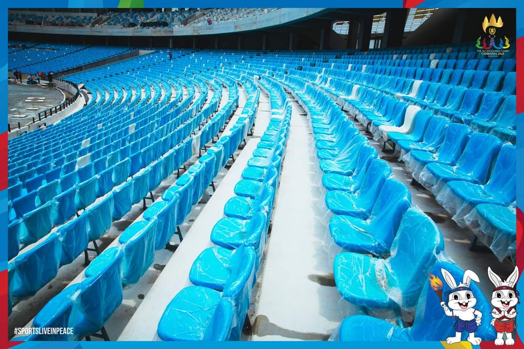 តាមការចង្អុលបង្ហាញដ៏ខ្ពង់ខ្ពស់ពីសម្តេចពិជ័យសេនា ទៀ បាញ់ ឧបនាយករដ្ឋមន្ត្រី រដ្ឋមន្ត្រីក្រសួងការពារជាតិ និងជាប្រធាន CAMSOC និងឯកឧត្តមបណ្ឌិត ថោង ខុន អនុប្រធានអចិន្ត្រយ៍ CAMSOC នៅពេលនេះឯកឧត្តម បានចុះពិនិត្យមើលវឌ្ឍនភាពការងារកីឡដ្ឋានធំជាជំនួយឥតសំណងរបស់សាធារណរដ្ឋប្រជាមានិតចិន ដែលជាចំណងដៃដ៏ពិសិដ្ឋជូនចំពោះសម្តេចតេជោនាយករដ្ឋមន្ត្រី ដែលធ្វើសមិទ្ធផលនេះលេចចេញជារូបរាងហើយ។ តាមការវាយតម្លៃចុងក្រោយ សំណង់នេះសម្រេចបាន៩៥% ហើយនៅសល់តែ៥%ទេ ដែលកំពុងកែលម្អ រចនា សម្អាតប៉ុណ្ណោះ។ កីឡដ្ឋានធំនេះមានកៅអីអង្គុយចំណុះ៦ម៉ឺននាក់ ក្នុងនោះការបំពាក់កៅអីសម្រេចបាន ២២០០០ហើយ ហើយនៅនៅសប្តាហ៍ទី១ ឬសប្តាហ៍ទី២នៃខែឧសភា ឆ្នាំ២០២១នឹងសម្រេចបាន១០០%នៃកៅអីសរុបចំនួន៦ម៉ឺននេះ។