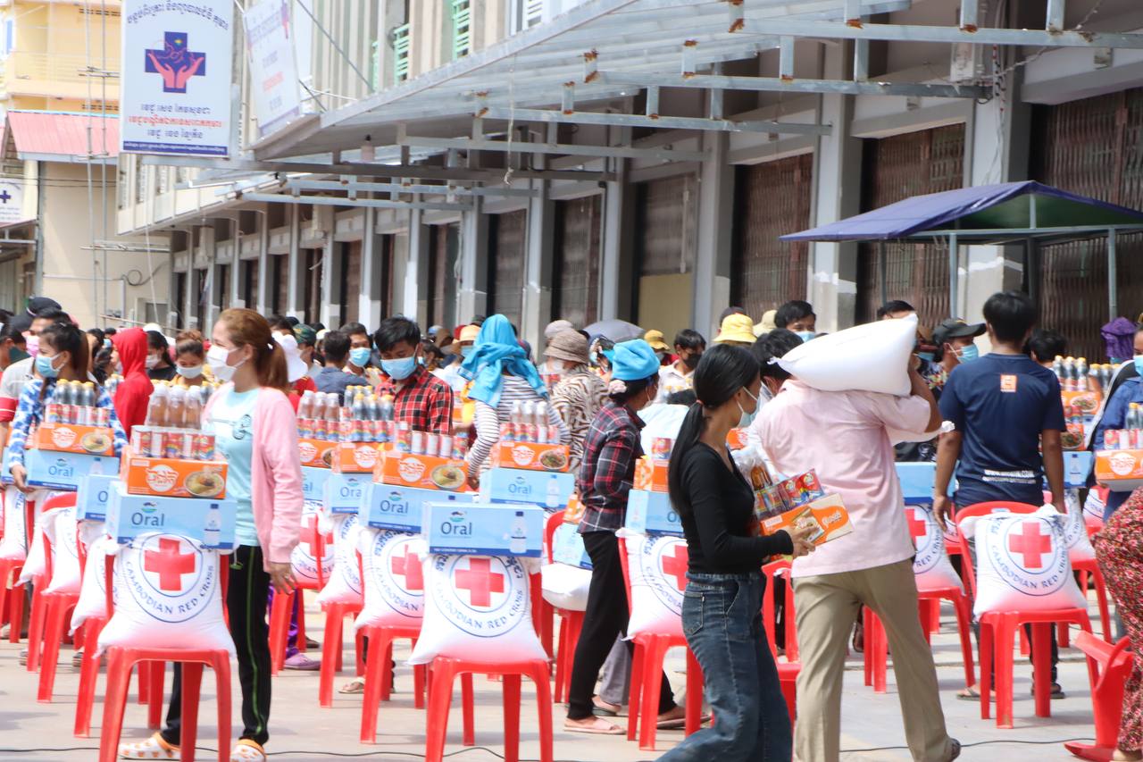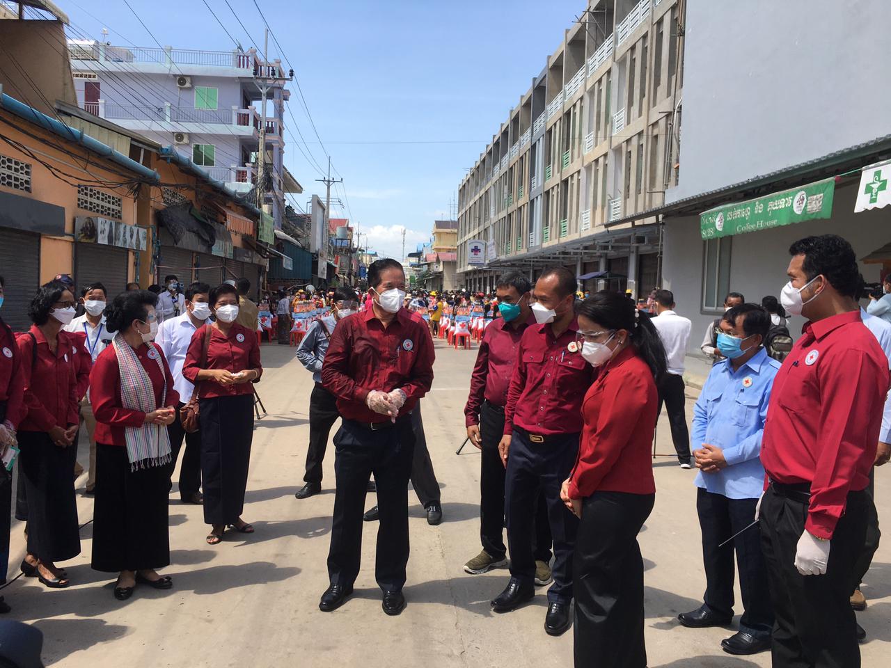 នាំយកអំណោយរបស់សម្ដេចកិត្តិព្រឹទ្ធបណ្ឌិត ប៊ុន រ៉ានី ហ៊ុនសែន ប្រធានកាកបាទក្រហមកម្ពុជា ជូនប្រជាពលរដ្ឋ និងកម្មករ–កម្មការនី ចំនួ៧៩៨៨គ្រួសារ នៅក្នុងតំបន់បិទខ្ទប់នៃភូមិព្រៃទា១ សង្កាត់ចោមចៅទី៣ ខណ្ឌពោធិសែនជ័យ នាព្រឹកថ្ងៃទី០៥ មិថុនានេះ។