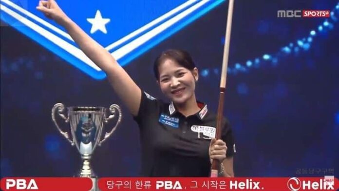 ទម្រាំអាចបង្កើតកំណត់ត្រាថ្មីលើទឹកដីកូរ៉េ លោកស្រីបានឆ្លងកាត់ការប្រកួតជាច្រើនវគ្គ រហូតបានឡើងវគ្គផ្ដាច់ព្រ័ត្រ ប៉ះកីឡាការិនីមាន បទពិសោធយូរឆ្នាំ Kim Gayoung ហើយក្នុងការប្រកួតដណ្ដើមជើងឯក គឺកាន់តែស្វិតស្វាញថែមទៀត ដោយកីឡាការិនីកូរ៉េរូបនេះ បានបើកការនាំមុខ ១១-៧ពិន្ទុមុន នៅសិតទី១ ។ បន្ទាប់មកទើបកីឡាការិនី ស្រួង ភាវី វាយបកយកឈ្នះវិញ ៣សិតជាប់គ្នា ក្នុងពិន្ទុ ១១-៤, ១១-១០ និង ១១-៩ ដើម្បីគ្រងជើងឯកពានរង្វាន់ Blue One Resort LPBA Championship ។