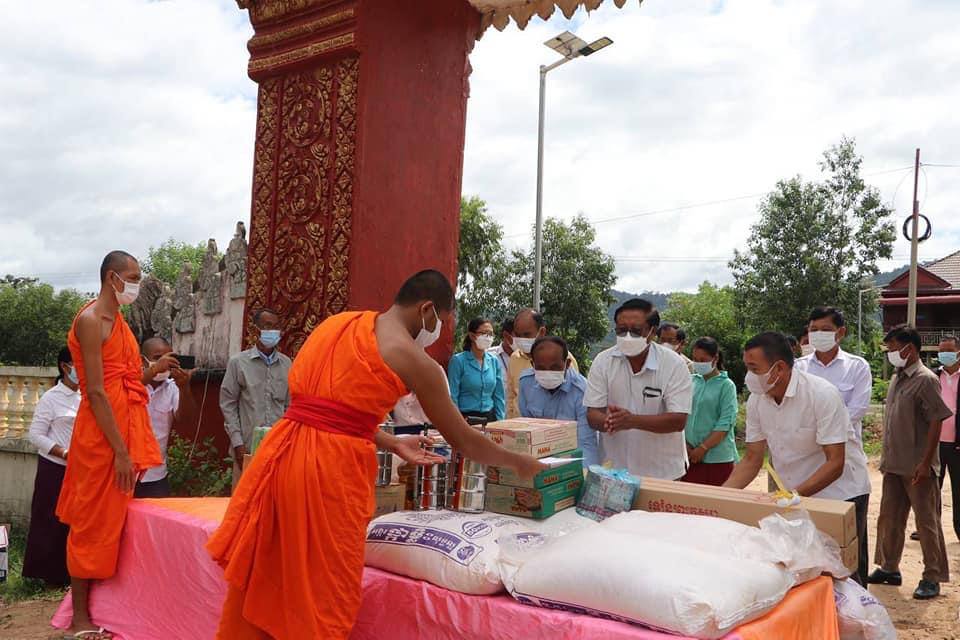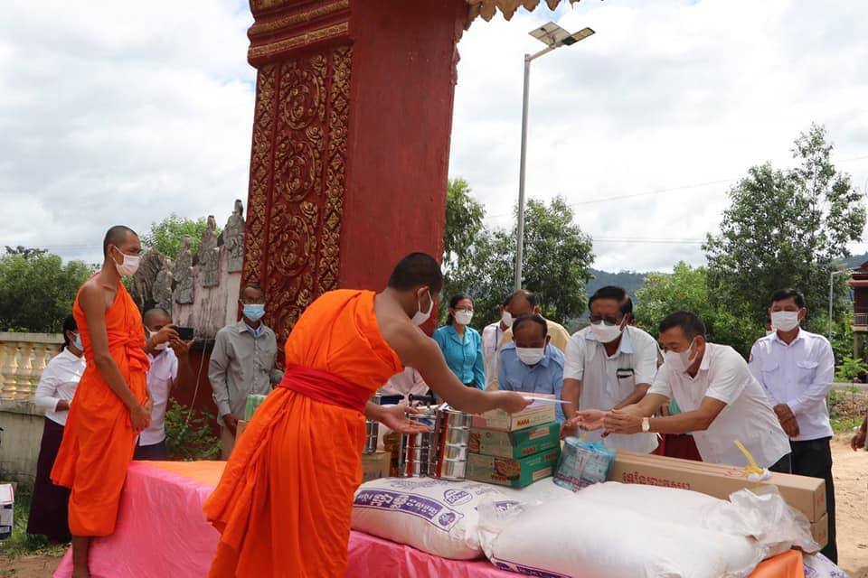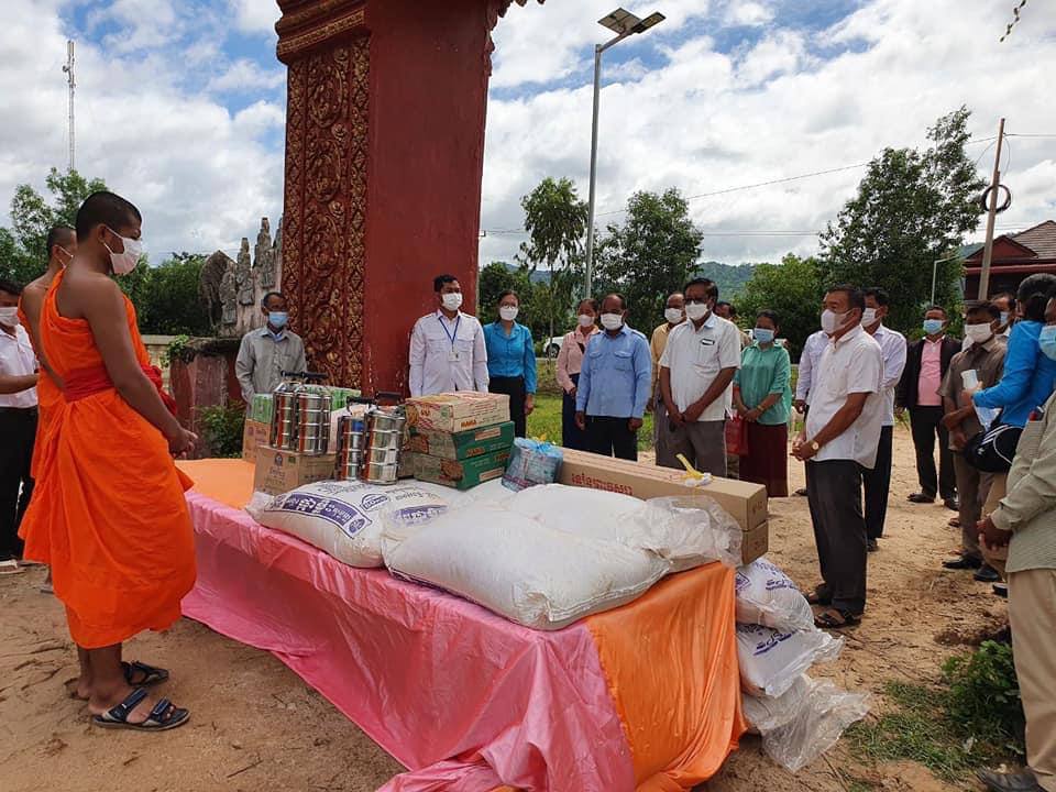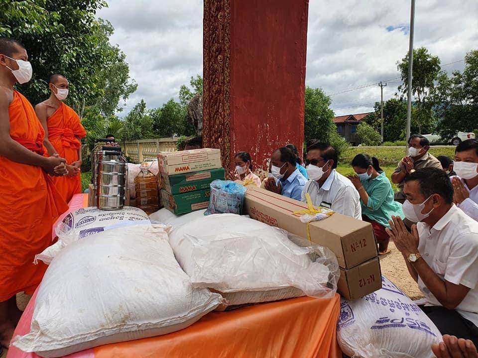 ប្រធានក្រុមការងារថ្នាក់ ខេត្តចុះជួយមូលដ្ឋានស្រុកសង្គមថ្មី នាំយក ទេយ្យទានប្រគេនព្រះសង្ឃគង់ ជាប់ចត្តាឡីស១៤ថ្ងៃ នៅវត្តតេជះរង្សី