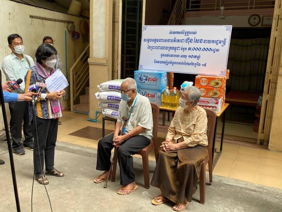 ថា កាលពីដើមខែកក្កដា កន្លងទៅនេះ យើងបានរកឃើញលោកតា លោកយាយ អាយុជាង១០០ឆ្នាំ ដែលស្ម័គ្រចិត្ដមកចាក់វ៉ាក់សាំងការពារជំងឺកូវីដ១៩ ចំនួន៨នាក់ ហើយត្រូវបានក្រុមការងារយើង នាំយកថវិការបស់ សម្ដេចតេជោ ហ៊ុនសែន នាយករដ្ឋមន្ដ្រីកម្ពុជា ប្រគល់ជូនដល់លោកតា លោកយាយរួចហើយ។