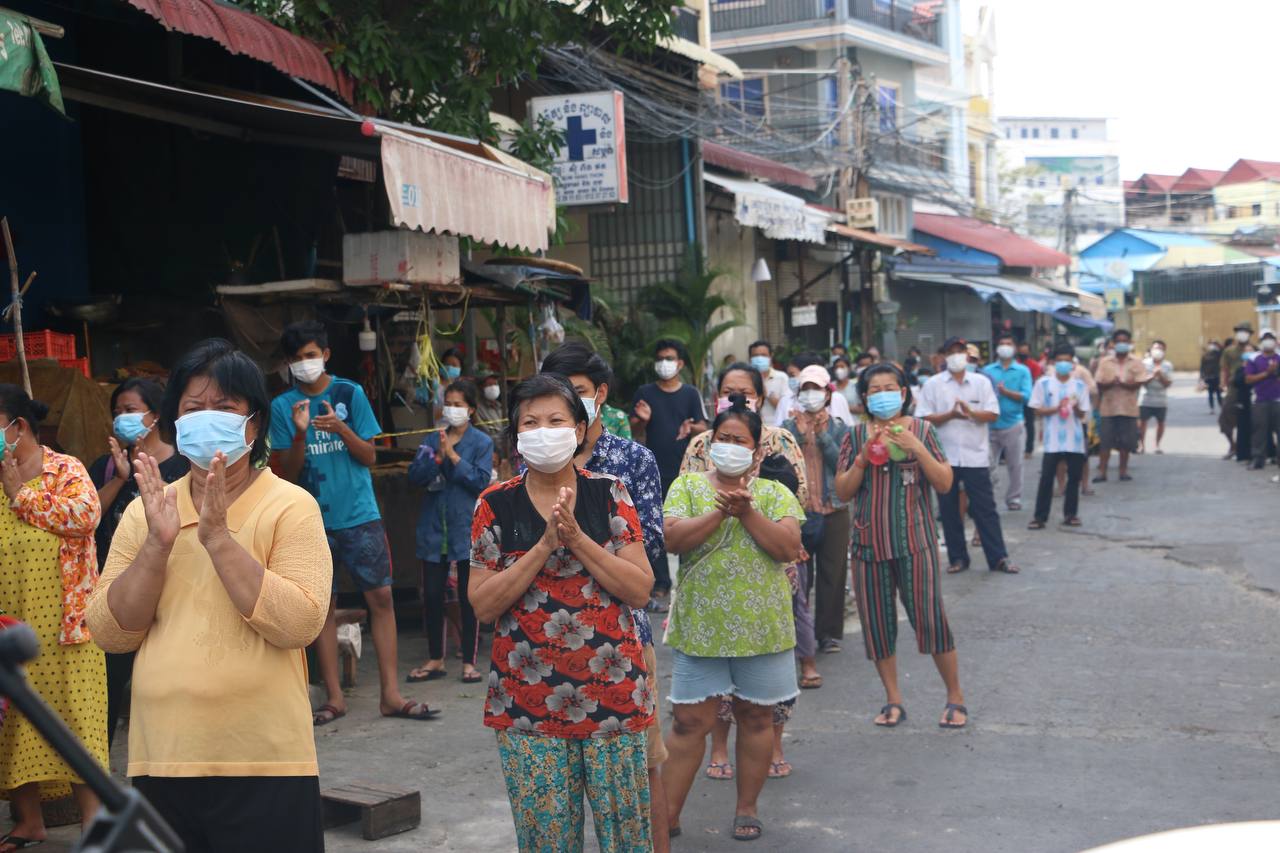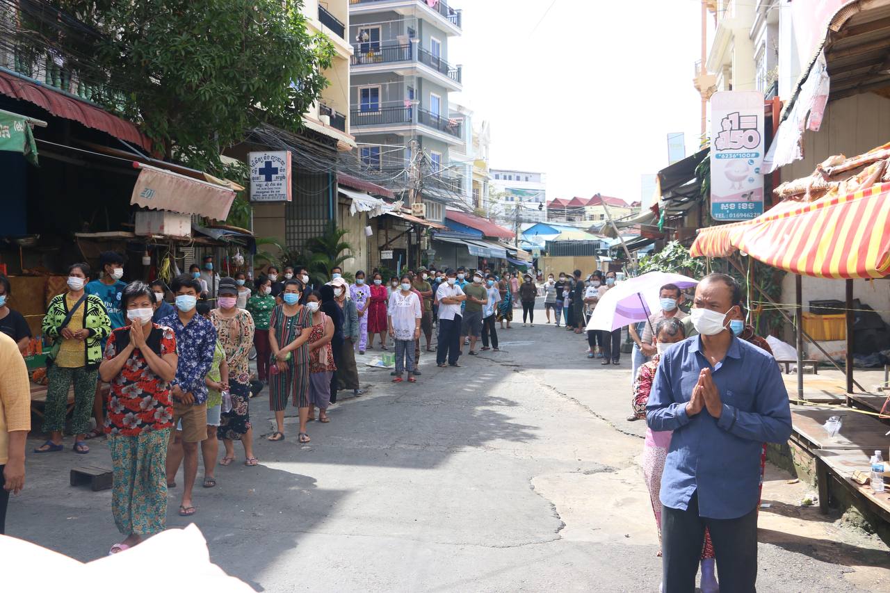 លោកឯក ឃុនដឿ បញ្ជាក់ថា រដ្ឋបាលរាជធានីភ្នំពេញ កាលពីល្ងាចថ្ងៃទី០២ សីហា បានសម្រេចបិទខ្ទប់ច្រកផ្លូវលេខ ៣៧២, ៣៧២z និងផ្លូវលេខ ៣៦២ ស្ថិតក្នុងភូមិ សង្កាត់បឹងសាឡាង ខណ្ឌទួលគោក រាជធានីភ្នំពេញ ហើយនៅពេលនេះ អាជ្ញាធរសហការជាមួយក្រុមគ្រូពេទ្យបន្តពិនិត្យយកសំណាកនៅភូមិ៤ ភូមិនិងភូមិ៨សង្កាត់បឹងសាឡាង ខណ្ឌទួលគោក បន្តទៀត ខណៈពេលពួកគាត់កំពុងរងចាំលទ្ធផលនៃការពិនិត្យយកសំណាក់ពីម៉ាស៊ីនធំនិងដោយមានការគិតគូរពីសម្តេចទាំងទ្វេ ទើបអោយអាជ្ញាធរខណ្ឌទួលគោកចុះយកអំណោយមកប្រគល់ជូនពួកគាត់ទាំងជាង២០០គ្រួសារនេះតែម្តង។