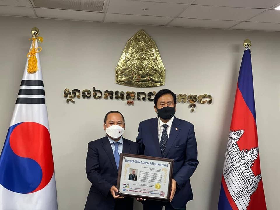 ស្ថានទូតកម្ពុជាប្រចាំនៅ សាធារណរដ្ឋកូរ៉េ ទទួល បានពានរង្វាន់ ក្នុងយុទ្ធនាការ ការប្រឆាំងអំពើពុករលួយនៅកូរ៉េ