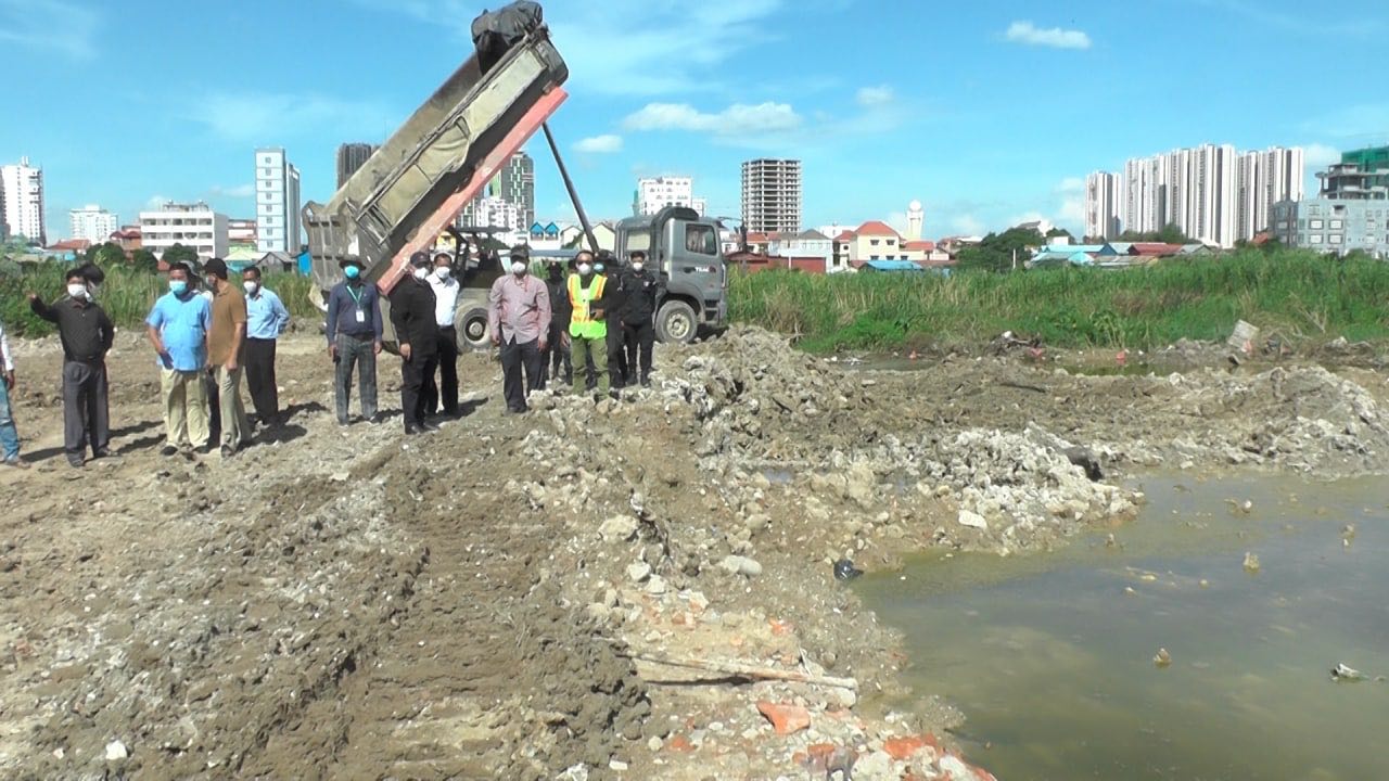 អាជ្ញាធរខណ្ឌចំការមន ចុះកាយអាចម៍ដីដែលគេរំលោភ ចេញពីអាងស្តុកទឹកបឹងត្របែក ជាមួយនិងការស្ថាបនាផ្លូវព័ទ្ធជុំវិញ