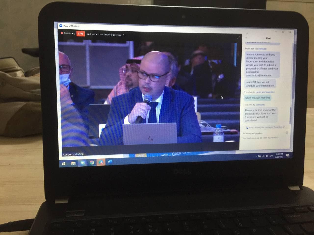 ភ្នំពេញ៖មន្ត្រី៣រូបរបស់សហព័ន្ធកីឡាលើកទម្ងន់កម្ពុជាបានចូលរួមមហាសន្និបាតរបស់សហព័ន្ធកីឡាលើកទម្ងន់អន្តរជាតិ (IWF) នាថ្ងៃទី២៩ ខែសីហា ឆ្នាំ២០២១ តាមរយៈ Zoom នៅទីក្រុងដូហា ប្រទេសកាតាតំណាងឲ្យឯកឧត្តមវ៉ាត់ ចំរើនដែលជា ប្រធានសហព័ន្ធកីឡាលើកទម្ងន់កម្ពុជា។
