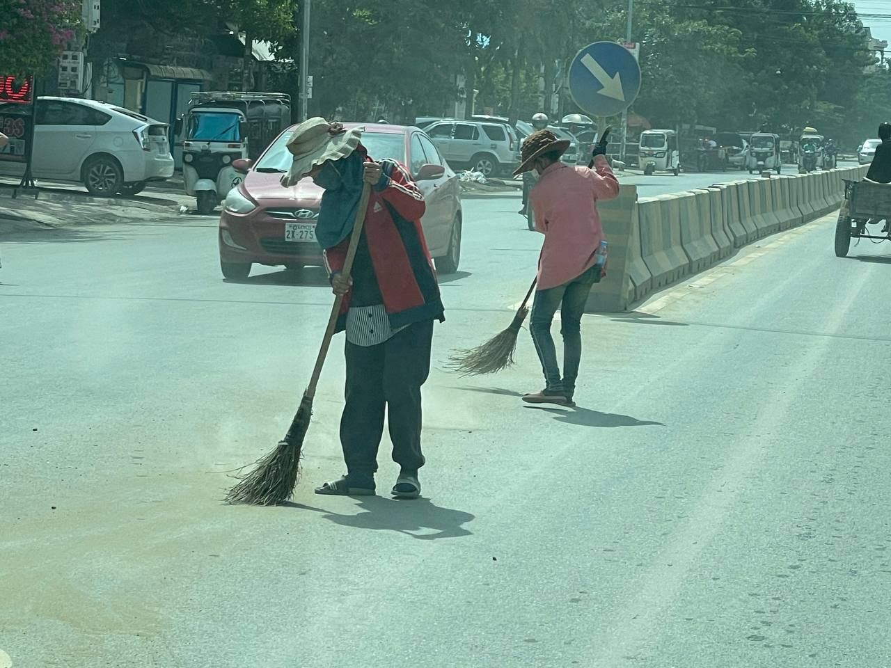 អាជ្ញាធររាជធានី បានបោសសំអាតនិងបាញ់ទឹកលាងសំអាតដីខ្សាច់ នៅលើកំណាត់ផ្លូវជាតិលេខ២ហើយ
