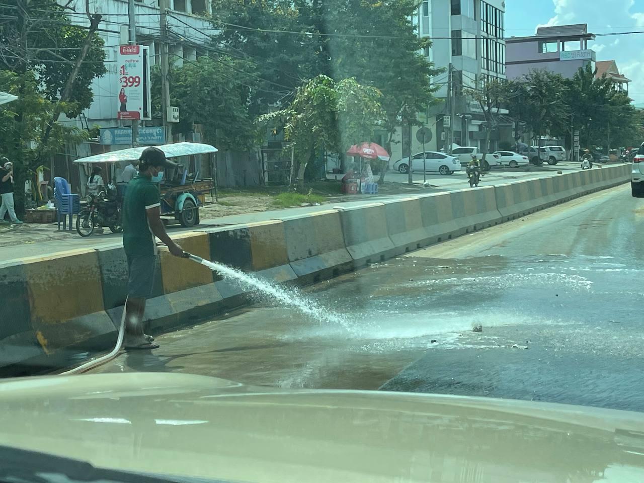 បញ្ចេញឡានបាញ់ទឹកជាច្រើនគ្រឿងផងដែរ ដើម្បីបាញ់លាងសម្អាតផ្លូវនេះឱ្យបានស្អាតឡើងវិញ ខណៈដែលផ្លូវនេះមានដីខ្សាច់ជ្រុះពេញលើផ្លូវ បង្កការលំពិបាក ក្នុងការធ្វើដំណើររបស់បងប្អូនប្រជាពលរដ្ឋដែលធ្វើដំណើរឆ្លងកាត់ទៅនេះ ក៏ដូចជាបងប្អូនប្រជាពលរដ្ឋដែលរស់នៅអមសងខាងផ្លូវនេះផងដែរ។
