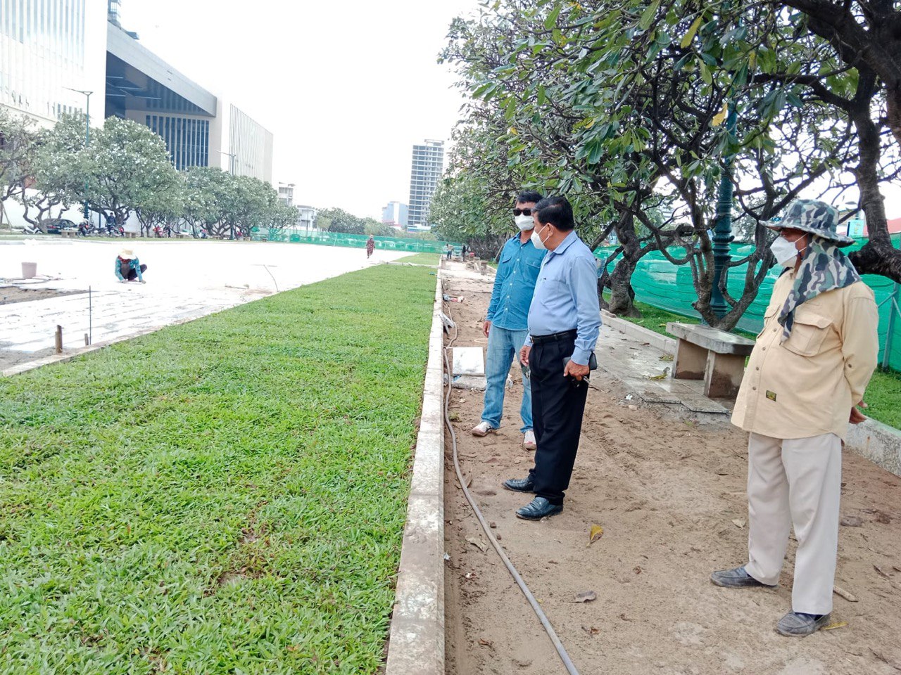 ភ្នំពេញ៖ គម្រោងនៃកែលម្អសួនច្បារនៅមុខ អគារទីស្តីការក្រសួងការពារជាតិថ្មី ក្រុមការងារនៃមន្ទីរសាធារណការនិងដឹកជញ្ជូនរាជធានីភ្នំពេញបាននឹងកំពុងធ្វើសកម្មភាពយ៉ាងមមាញឹក ហើយបើគិតមកដល់ពេលនេះ គម្រោងនេះបានសម្រេចប្រមាណ៩៥ភាគរយហើយ គ្រោងនឹងរួចរាល់នៅសប្តាហ៍ក្រោយនេះ។