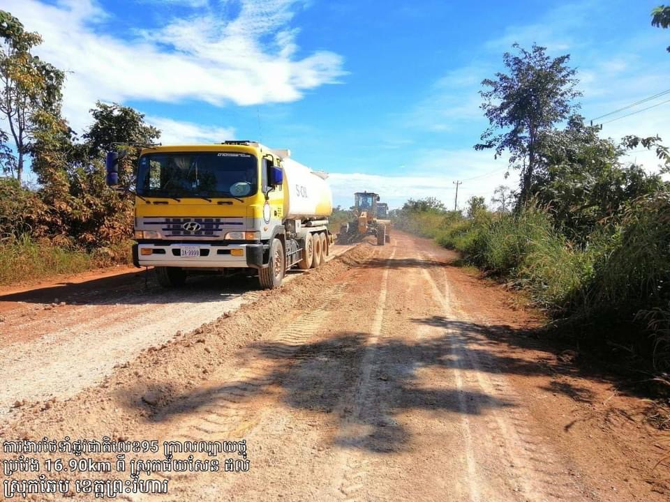.ការងារថែទាំផ្លូវជាតិលេខ ៩៥ប្រវែង១៦,៩គីឡូម៉ែត្រ(ជ័យសែនឆែប)  ដោយកៀរសម្រួល ថែមដីល្បាយថ្ម ស្ថិតក្នុងស្រុកឆែប ខេត្តព្រះវិហារ។