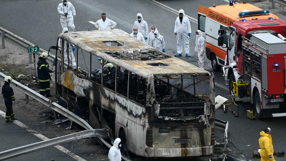 Reuters - កាលពីថ្ងៃអង្គារ រថយន្តក្រុងទេសចរណ៍មកពីប្រទេស North Macedonia បានឆាបឆេះនៅលើផ្លូវល្បឿនលឿនមួយនៅភាគខាងលិចប្រទេស Bulgaria មុនពេលថ្ងៃរះ ដោយបានសម្លាប់មនុស្សយ៉ាងហោចណាស់ចំនួន ៤៥នាក់ ដែលក្នុងនោះមានកុមារចំនួន ១២នាក់។