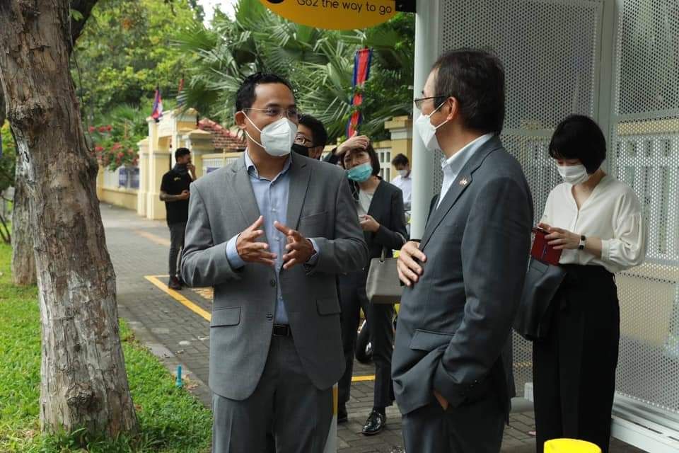 អគ្គរាជទូតជប៉ុនប្រចាំកម្ពុជា និងលោកនួន ផារត្ន័ អភិបាលរងរាជធានីភ្នំពេញចុះពិនិត្យខ្សែរត់និងធ្វើដំណើរតាមរថយន្តក្រុង