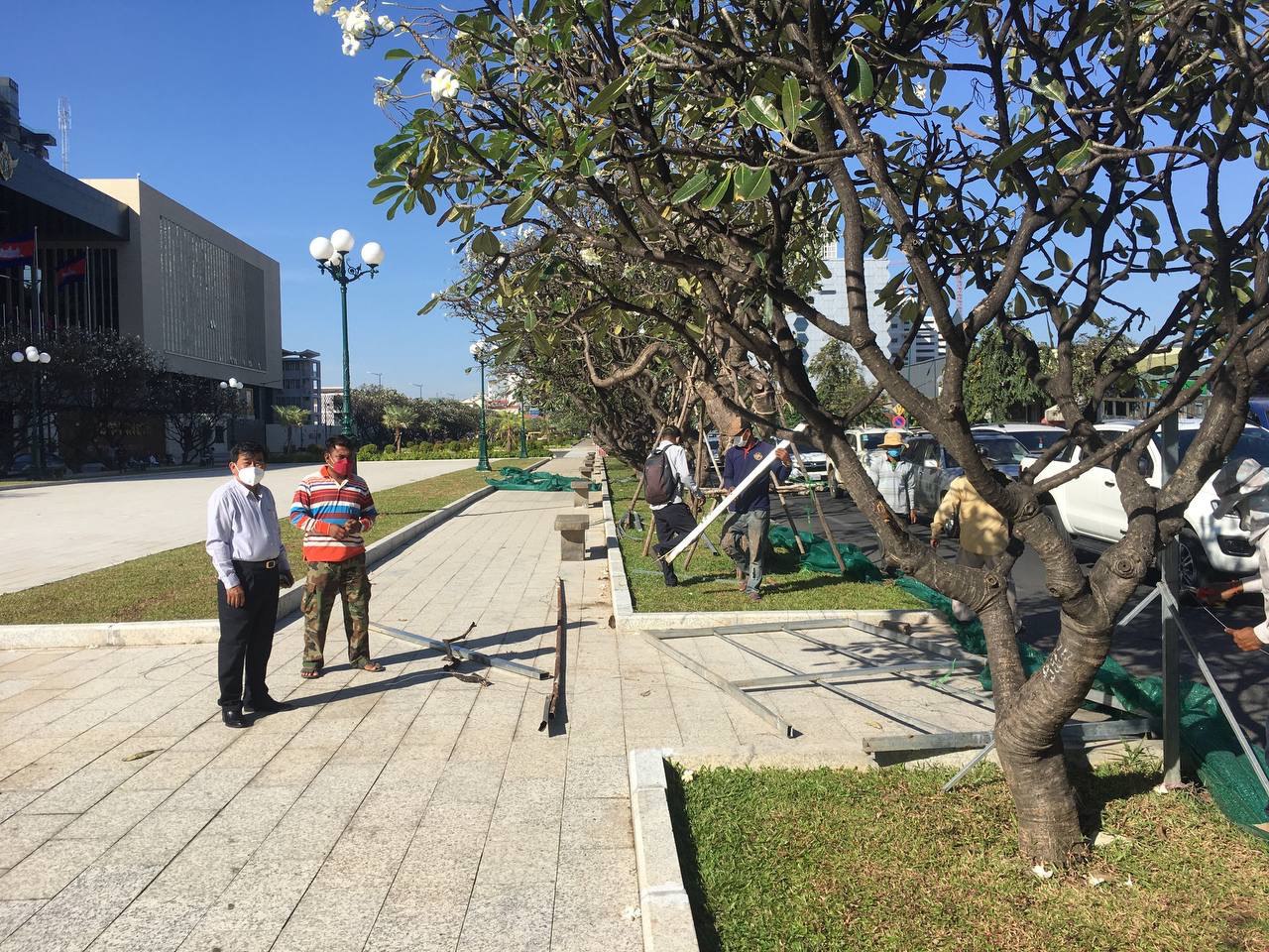 លោកសំ សាមុត ប្រធានអង្គភាពសួនច្បារនិងរុក្ខជាតិនៃមន្ទីរសាធារណការ និងដឹកជញ្ជូនរាជធានីភ្នំពេញបានអោយដឹងនៅព្រឹកថ្ងៃទី១៣ធ្នូនេះថា៖សួនច្បារនេះត្រូវបានលោកឃួង ស្រេងអភិបាលរាជធានីភ្នំពេញ ណែនាំឲ្យធ្វើការជួសជុលកែសម្រួលឡើងវិញកាលពីខែកក្កដាឆ្នាំ២០២១ ដោយលោកអភិបាល បានជំរុញឲ្យអង្គភាពរបស់លោកជំរុញការងារបានលឿន ធ្វើយ៉ាងណាអោយរួចរាល់នៅមុនការសម្ពោធដាក់អោយប្រើប្រាស់អាគារក្រសួងការពារជាតិ ដែលគ្រោងនឹងសម្ពោធដាក់អោយប្រើប្រាស់ក្រោមអធិបតីភាពសម្តេចតេជោហ៊ុន សែននាយករដ្ឋមន្ត្រីនៅខែចុងខែធ្នូឆ្នាំ២០២១នេះ។