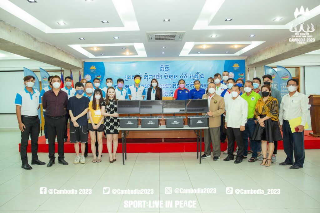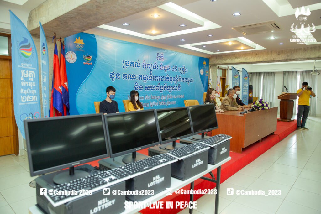 ភ្នំពេញ៖ថ្មីៗនេះក្រុមហ៊ុនឆ្នោតកីឡាជាតិ ដែលជាដៃគូដ៏សំខាន់របស់ គណៈកម្មាធិការជាតិអូឡាំពិកកម្ពុជា(NOCC)បានផ្ដល់កុំព្យូទ័រចំនួន៤៥គ្រឿង ដល់ស្ថាប័នកីឡាដ៏ធំមួយនេះ