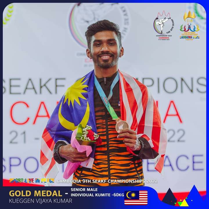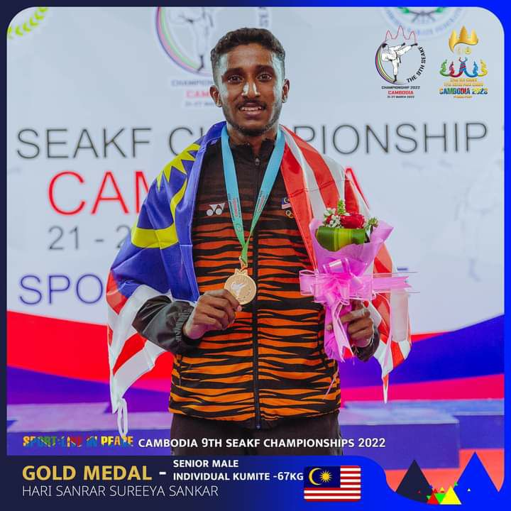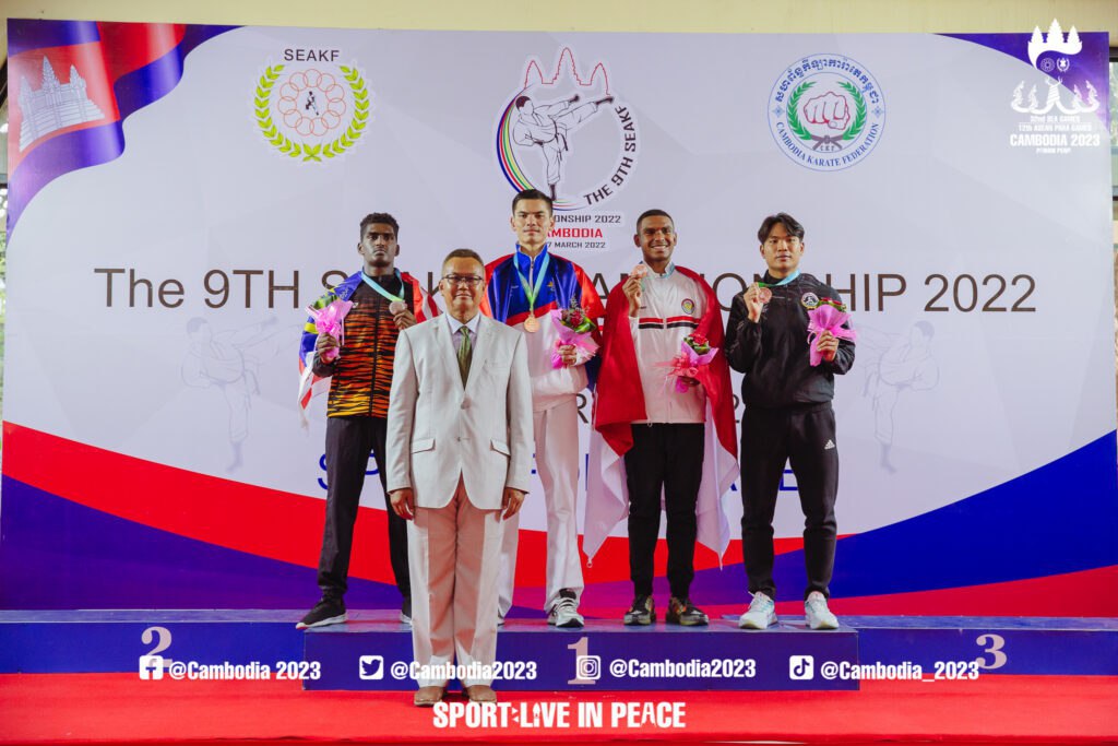 ភ្នំពេញ៖ព្រឹត្តិការណ៍ The 9th South East Asian Karate Championshipនៅថ្ងៃទី២៦មីនានេះកម្ពុជារកបានមេដាយមាសមួយគ្រឿងហើយលើវិញ្ញាសាប្រយុទ្ធទម្ងន់ក្រោម៨៤គីឡូក្រាម ។