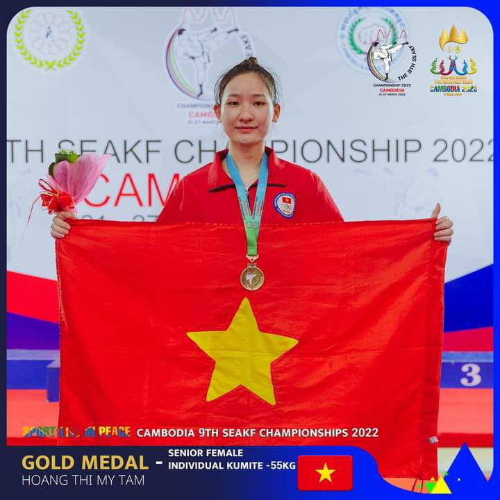 វិញ្ញាសាប្រយុទ្ធនារីទម្ងន់ក្រោម ៥៥គីឡូក្រាម៖ចំណាត់ថ្នាក់លេខ១(មេដាយមាស) កីឡាការិនីវៀតណាម Hoang Thi My Tam