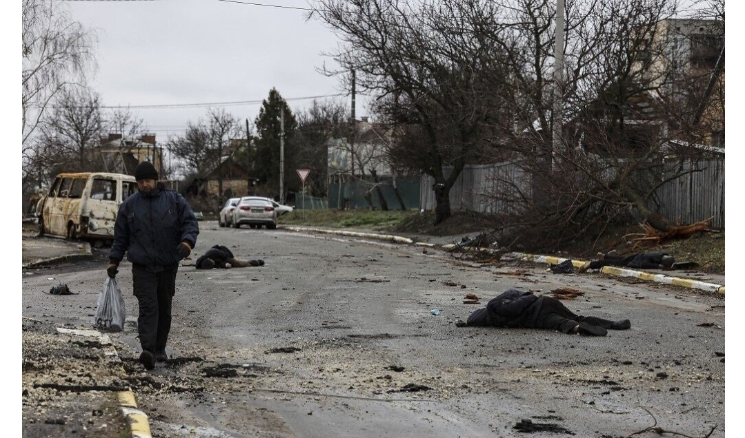 បរទេស ៖ សាកសពបុរសជាជនស៊ីវិលប្រមាណ ២០នាក់ ត្រូវបានគេប្រទះឃើញដេក រដូករណែល ពាសពេញផ្លូវក្នុងទីក្រុង Bucha ភាគពាយព្យទីក្រុង កៀវ បន្ទាប់ពីកងកម្លាំងរុស្ស៊ី ដកចេញពីតំបន់នេះ។