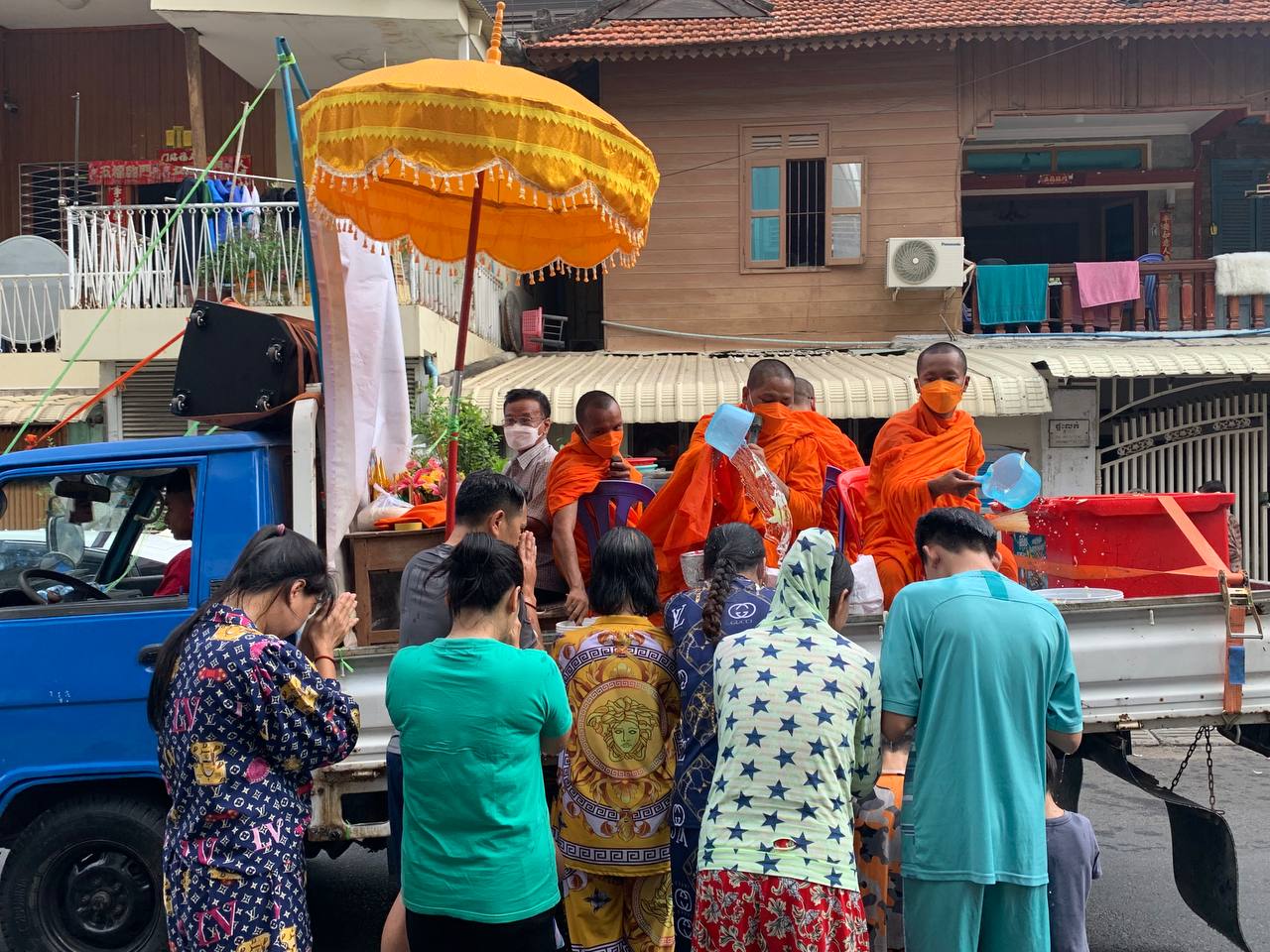 និមន្តព្រះសង្ឃ ១២ អង្គគង់លើរថយន្តប្រោះព្រំ តាមដងផ្លូវ នឹងតាមគេហដ្ឋាន ដើម្បីបណ្ដេញឧបទ្រពចង្រៃទាំងពួង ក្នុងឱកាសបុណ្យចូលឆ្នាំថ្មី