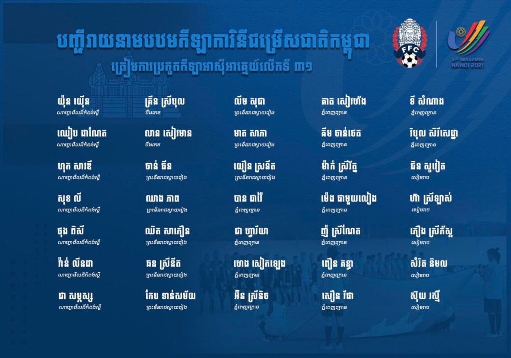 ភ្នំពេញ៖សហព័ន្ធកីឡាបាល់ទាត់កម្ពុជាបានបញ្ចេ្បញ្ជីឈ្មោះបឋមនៃក្រុមបាល់ទាត់