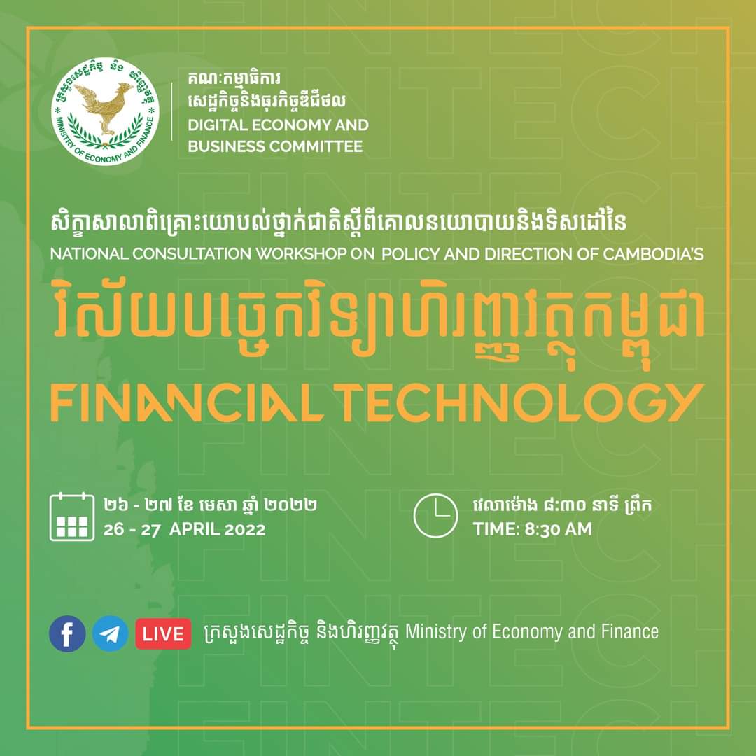 សិក្ខាសាលានឹងប្រារព្ធឡើងនៅថ្ងៃទី ២៦ និង ២៧ ខែមេសា ឆ្នាំ២០២២ វេលាម៉ោង ៨:៣០ព្រឹករហូតដល់ម៉ោង៥:០០ល្ងាច ដោយមានការចូលរួមពីសំណាក់ក្រសួង-ស្ថាប័នពាក់ព័ន្ធ, ស្ថានទូត, ដៃគូអភិវឌ្ឍន៍, គ្រឹះស្ថានហិរញ្ញវត្ថុធនាគារនិងមិនមែនធនាគារ, សមាគម, និងក្រុមហ៊ុនបច្ចេកវិទ្យាហិរញ្ញវត្ថុ នៅសណ្ឋាគារ ហៃយ៉ាត់ រីជិនស៊ី ភ្នំពេញ ព្រមជាមួយនឹងការចួលរួមនៅលើកម្មវិធី Zoom ទៀតផង។ លើសពីនេះ សិក្ខាសាលាក៏នឹងមានការផ្សាយផ្ទាល់លើគេហទំព័រហ្វេសប៊ុកនិង Telegram ផ្លូវការរបស់ ក្រសួងសេដ្ឋកិច្ច និង ហិរញ្ញវត្ថុ ជូនដល់សាធារណជនផងដែរ៕