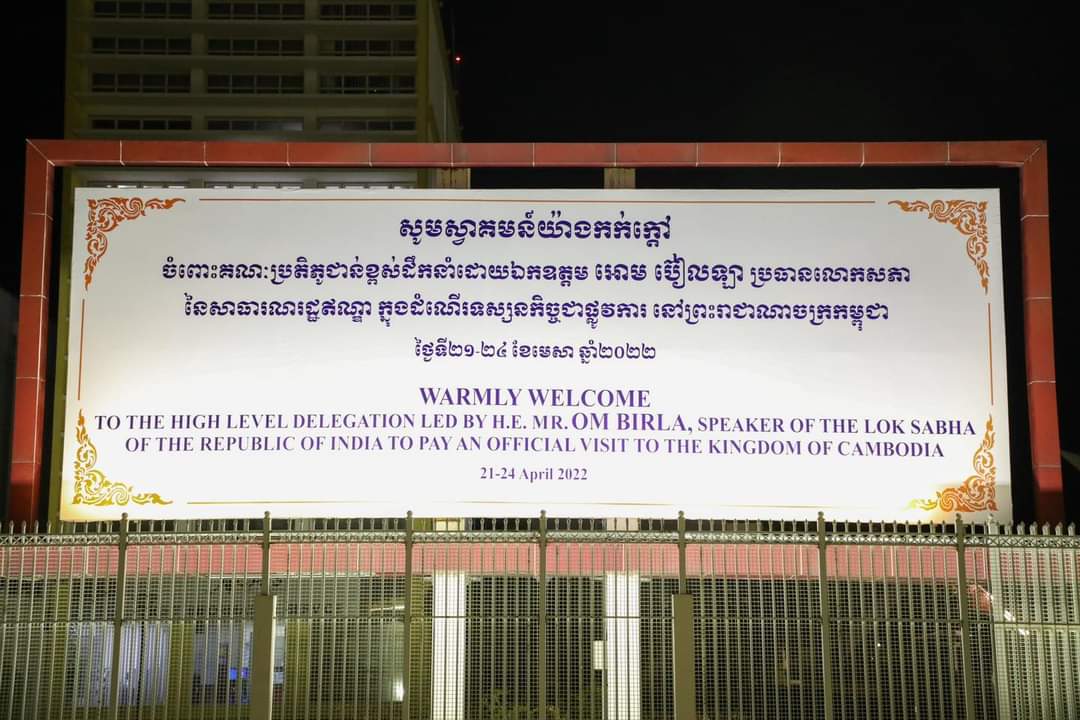 ភ្នំពេញ៖ តបតាមការអញ្ជើញរបស់ សម្តេចអគ្គមហាពញាចក្រី ហេង សំរិន ប្រធានរដ្ឋសភា នៃព្រះរាជាណាចក្រកម្ពុជា ឯកឧត្តម អំ បឺរឡា (OM BIRLA) ប្រធានសភាជាន់ទាប នៃសាធារណរដ្ឋឥណ្ឌា បានអញ្ជើញមកដល់ព្រលានយន្តហោះអន្តរជាតិភ្នំពេញហើយ នារាត្រីថ្ងៃទី២១ ខែមេសា ឆ្នាំ២០២២នេះ ដើម្បីបំពេញទស្សនកិច្ចជាផ្លូវការ និងមិត្តភាព នៅព្រះរាជាណាចក្រកម្ពុជា រយៈពេល៤ថ្ងៃ គឺចាប់ពីថ្ងៃទី២១ ដល់ថ្ងៃទី២៤ ខែមេសា ឆ្នាំ២០២២។
