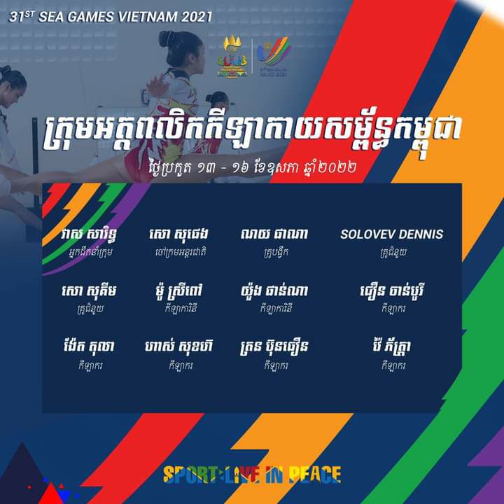 ស៊ីហ្គេម លើកទី៣១ នៅប្រទេសវៀតណាម នាខែឧសភា ឆ្នាំ២០២២ ខាងមុខ សូមចូលរួមអបអរសាទរ និងសូមជូនពរប្រតិភូគ្រូបង្វឹកគ្រូជំនួយ និងអត្តពលិករបស់យើង ទទួលបានជោគជ័យក្នុង បេសកកម្មដ៏មានសារៈនេះ ៕