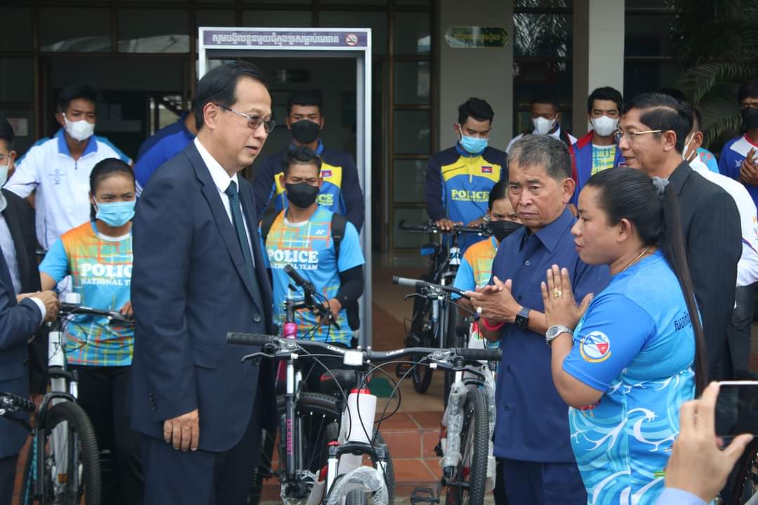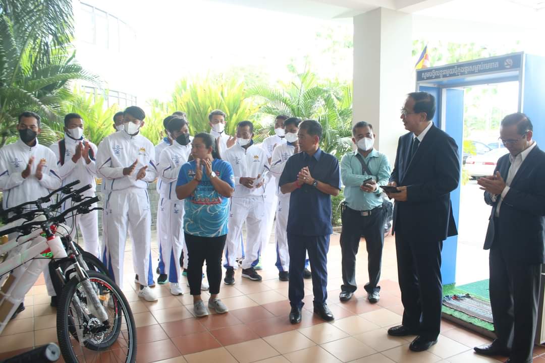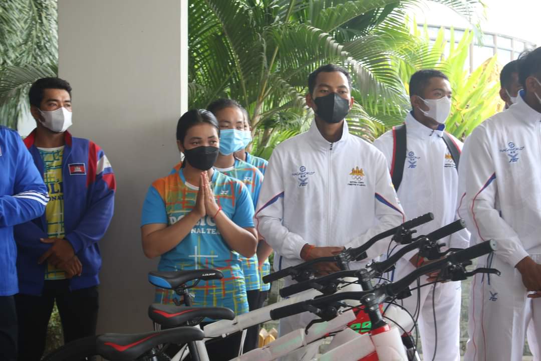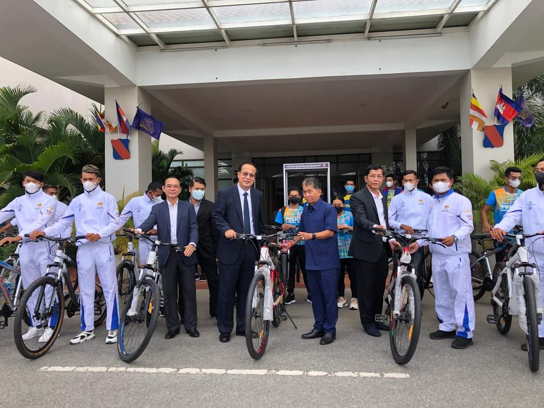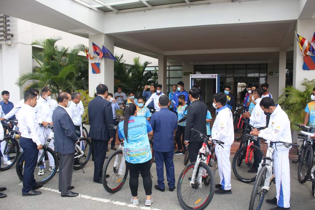 ឯកឧត្តមរដ្ឋមន្ត្រីបន្តថា ដើម្បីជួយសម្រួលដល់ការប្រមូលផ្តុំហ្វឹកហាត់នៅក្នុងសហព័ន្ធឱ្យមានភាពងាយស្រួល ក្នុងការធ្វើដំណើរទៅកន្លែងហ្វឹកហាត់ ឯកឧត្តមរដ្ឋមន្ត្រី បានឧបត្ថម្ភកង់ចំនួន ៣៥គ្រឿង ដល់ក្រុមគ្រូបង្វឹក និងកីឡាករ-កីឡាការិនី ក្នុងនោះគឺប្រគល់ជូនលើកទី១ ចំនួន ១៣គ្រឿង និងប្រគល់លើកទី២ នៅថ្ងៃនេះចំនួន ២២គ្រឿងទៀត ដើម្បីឱ្យកីឡាករ-កីឡាការនីទាំងអស់ ហ្វឹកហាត់សម្រាប់ត្រៀមចូលរួមការប្រកួតកីឡាស៊ីហ្គេម លើកទី៣១ ឆ្នាំ២០២២ នៅប្រទេសវៀតណាម និងដើម្បីត្រៀមខ្លួនចូលរួមប្រកួតកីឡាស៊ីហ្គេម លើកទី៣២ ឆ្នាំ២០២៣ ដែលកម្ពុជាធ្វើជាម្ចាស់ផ្ទះ។
