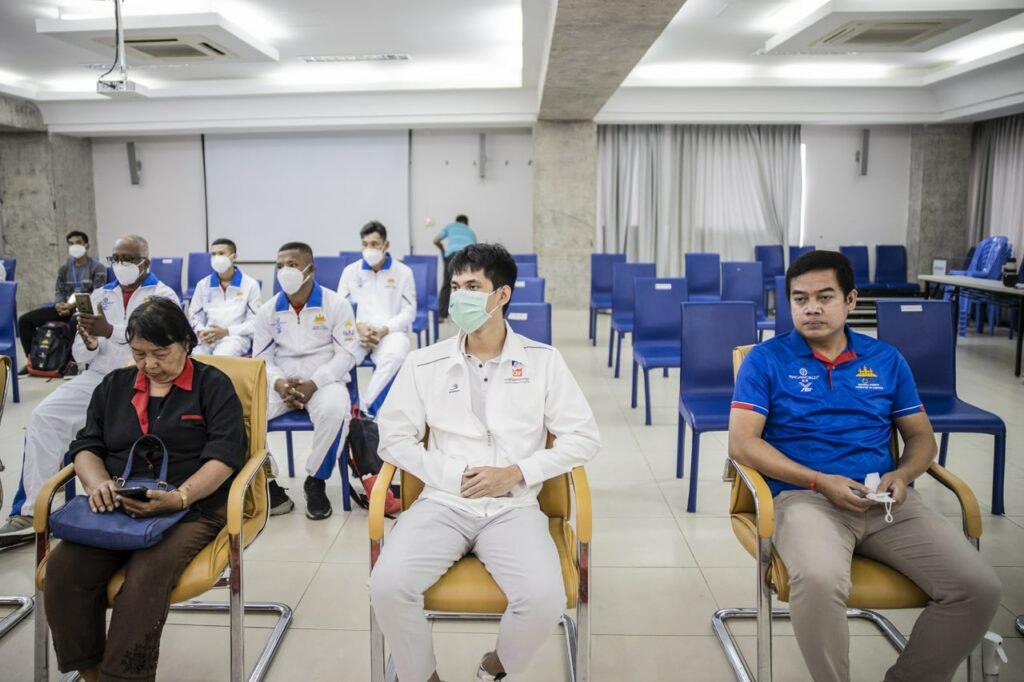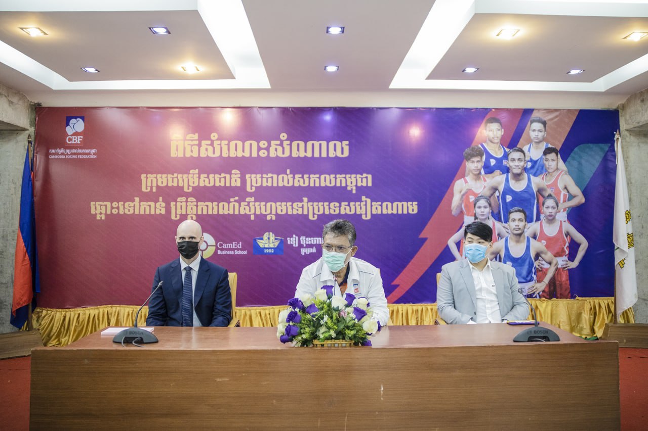 ភ្នំពេញ៖ថ្ងៃទី៩ឧសភាម្សិលម៉ិញនេះប្រមុខកីឡាប្រដាល់សកលកម្ពុជាគឺលោកវេជ្ជបណ្ឌិតឆឹង យ៉ៅយ៉េននិងលោក Casey Banrnettដែលជា អនុប្រធានសហព័ន្ធ បានជួបសំណោះសំណាល់ប្រធានប្រតិភូគ្រូបង្វឹកនិងកីឡាករកីឡាការីនីប្រដាល់សកលជម្រើសជាតិ១១ចំនួននាក់ដែលនឹងចេញទៅ ចូលរួមប្រកួតកីឡា SEA GAMES 2023 លើកទី៣១ នៅទីក្រុងហាណូយ ប្រទេសវៀតណាម ដែលនឹងប្រព្រឹត្តទៅចាប់ពីថ្ងៃទី១២ដល់២៣ ខែឧសភា ឆ្នាំ២០២២ ។