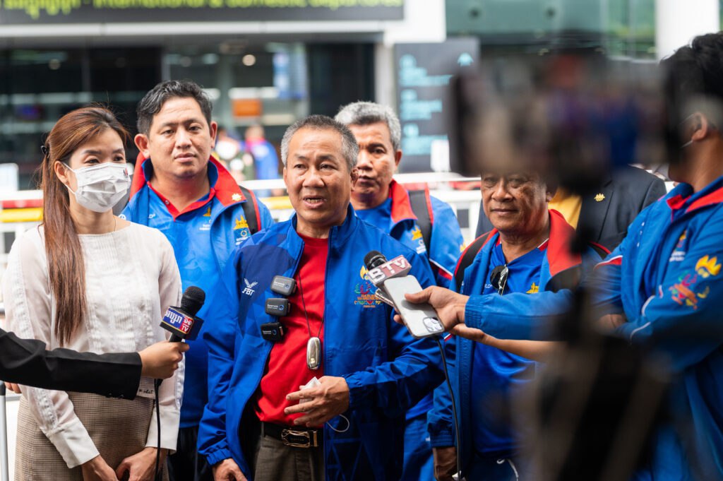 ភ្នំពេញ៖រសៀលថ្ងៃទី១០ខែឧសភាឆ្នាំ២០២២ម្សិលម៉ិញនេះ ប្រតិភូ កីឡាករ-កីឡាការិនីកម្ពុជា ៣ប្រភេទកីឡា ដែលដឹកនាំដោយឯកឧត្តមវ៉ាត់ចំរើននាយបេសកកម្មនិងជាអគ្គលេខាធិការគណៈកម្មាធិការជាតិអូឡាំពិកកម្ពុជាបានចេញដំណើរដើម្បីទៅចូលរួមប្រកួតព្រឹត្តិការណ៍កីឡាស៊ីហ្គេមលើកទី៣១ដែលនឹងធ្វើពិធីបើកជាផ្លូវការនៅថ្ងៃទី១២ខែឧសភាស្អែកនេះ។