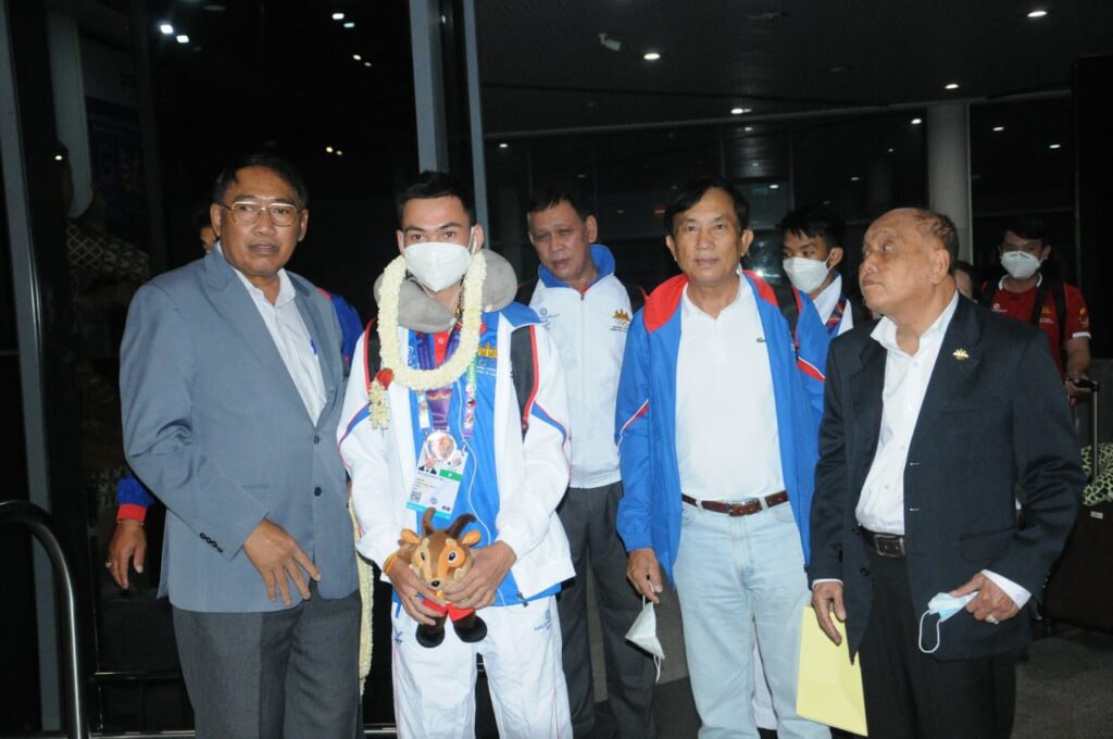 ភ្នំពេញ៖យប់ថ្ងៃទី១៧ឧសភាម្ចាស់មេដាយសំរិទ្ធចំនួន៤គ្រឿងលើប្រភេទកីឡាទូករ៉ូអ៊ីងនិងកីឡាវូស៊ូនៃព្រឹត្តិការណ៍ការប្រកួតកីឡាអាស៊ីអាគ្នេយ៍ (SEA GAMES) លើកទី៣១ ឆ្នាំ២០២១ នៅទីក្រុងហាណូយប្រទេសវៀតណាមបានមកដល់ព្រលានយន្តភ្នំពេញអន្តរជាតិដោយធ្វើដំណើរតាមជើងយន្តហោះពិសេស (Charter Flight)។