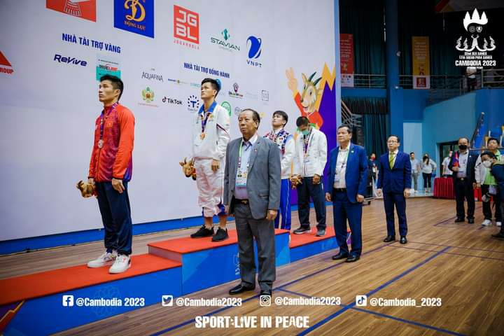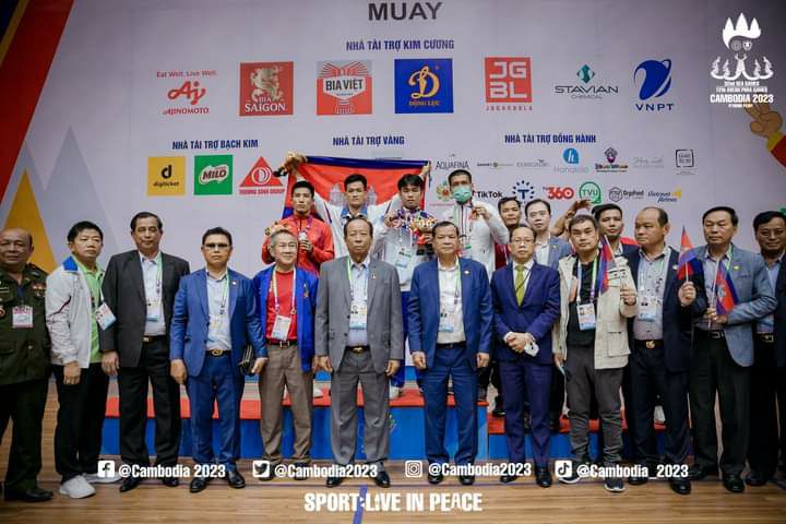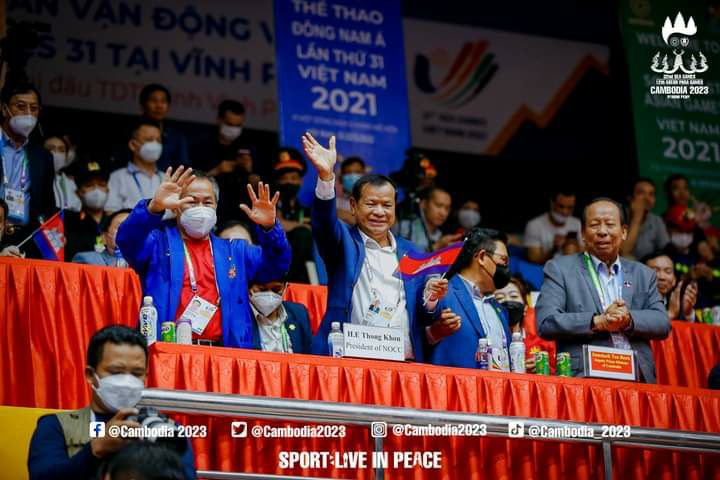 ម្ចាស់មេដាយមាសតែម្ដង ។សម្ដេចពិជ័យសេនាទៀ បាញ់ប្រធានគណៈកម្មាធិការជាតិតៀបចំស៊ីហ្គេមឆ្នាំ២០២៣(CAMSOC)អមដំណើរដោយឯកឧត្តមថោង ខុនអនុប្រធានអចិន្រ្តៃយ៍ CAMSOCដែលអញ្ជើញទៅចូលរួមទទួលទង់ស៊ីហ្គេមសម្រាប់ឆ្នាំ២០២៣នោះបានចូលរួមបំពាក់មេ