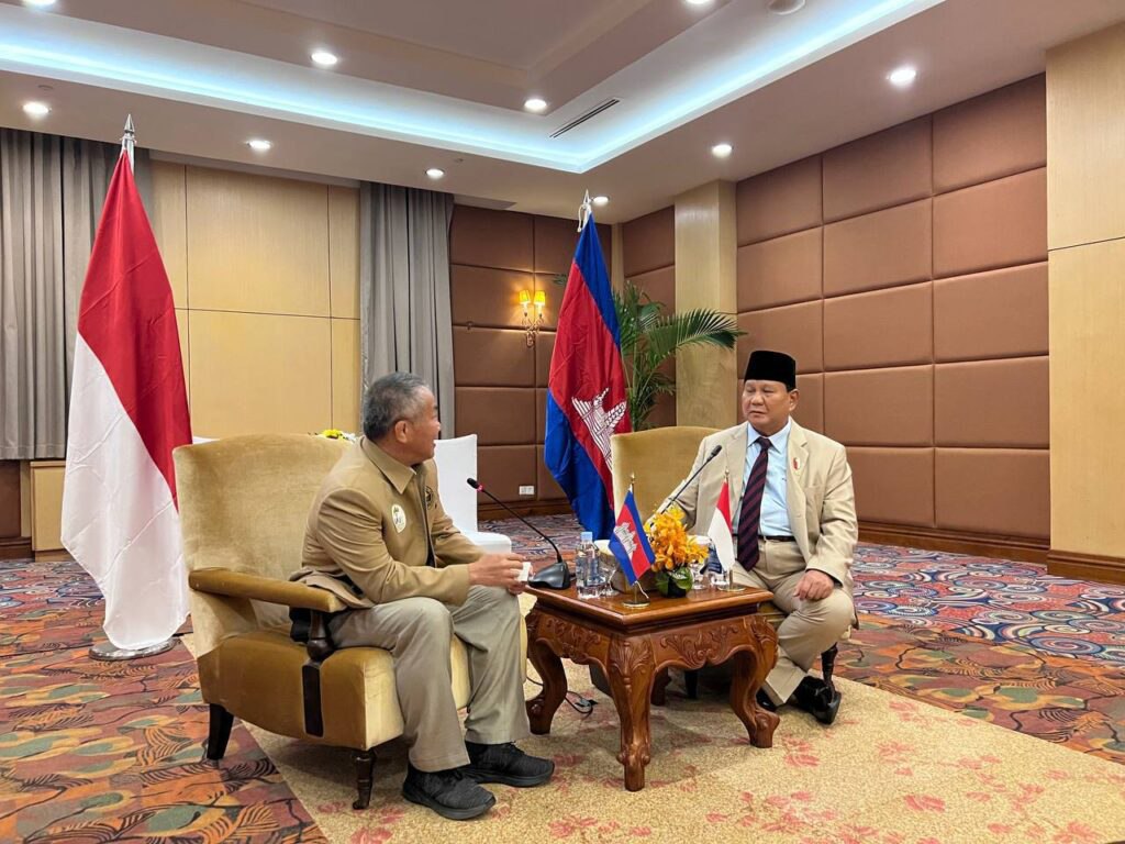 ពិភាក្សាការងារជាមួយឯកឧត្តម ប្រាប៊ូវូ ស៊ូប៊ីយ៉ានតូ រដ្ឋមន្ត្រីក្រសួងការពារជាតិឥណ្ឌូនេស៊ី និងជាប្រធានសហព័ន្ធកីឡាបញ្ចសីលាអន្តរជាតិ កាលពីរសៀលថ្ងៃទី២២ ខែមិថុនា ឆ្នាំ២០២២ ម្សិលមិញ នៅវិមានសន្តិភាព។
