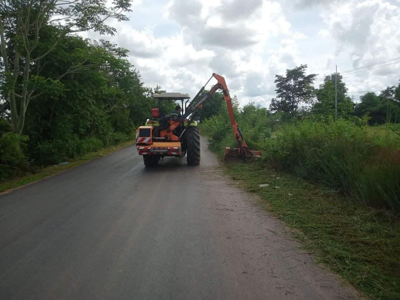 ក្រុមការងារមន្ទីរសាធារណការ ខេត្តព្រះវិហារសម្អាតរុក្ខជាតិដោយម៉ាសុីនស្វ័យប្រវត្តិ សងខាងផ្លូវជាតិនិងផ្លូវខេត្តក្នុងភូមិសាស្ត្រស្រុកជាំក្សាន្ត