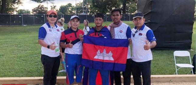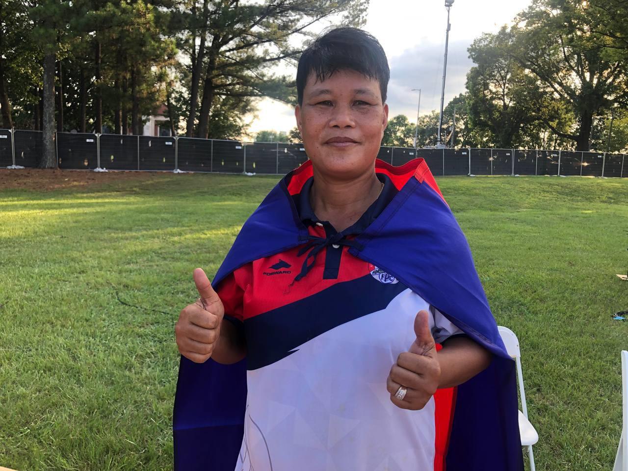 ភ្នំពេញ៖ទីបំផុតកីឡាការិនីប៉េតង់ជម្រើសជាតិកម្ពុជា អ៊ុក ស្រីមុំ បានឈ្នះមេដាយមាសលើវិញ្ញាសាវាយយកពិន្ទុ នៃការប្រកួតកីឡាពិភពលោក The World Games 2022 នៅទីក្រុង Birmingham រដ្ឋ Alabama សហរដ្ឋអាមេរិក បន្ទាប់ពីយកឈ្នះកីឡាការិនីម្ចាស់ផ្ទះអាមេរិក Rebeka HOWE ដោយលទ្ធផល ៤១ទល់២១ពិន្ទុ នៅព្រឹកថ្ងៃទី១៣ ខែ
