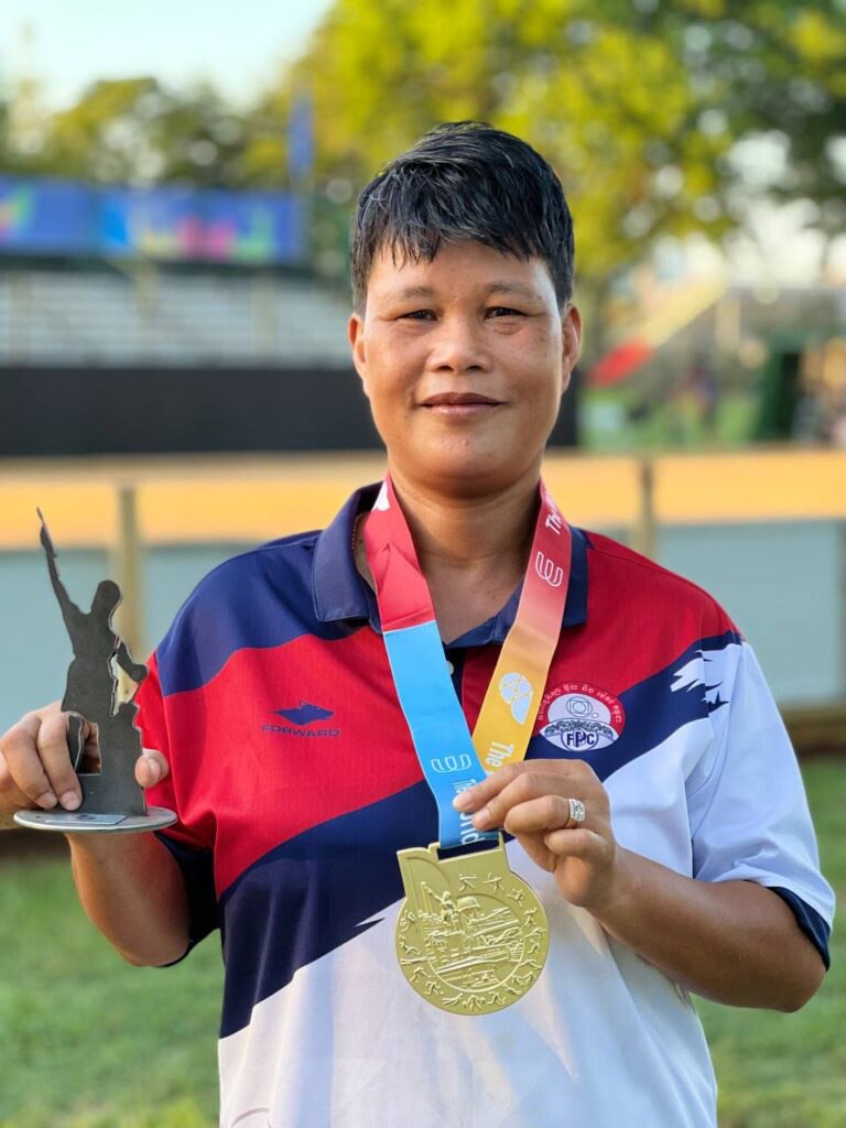 កីឡាការិនីប៉េតង់ជម្រើសជាតិកម្ពុជាអ៊ុក ស្រីមុំបានឈ្នះមេដាយមាសលើវិញ្ញាសា