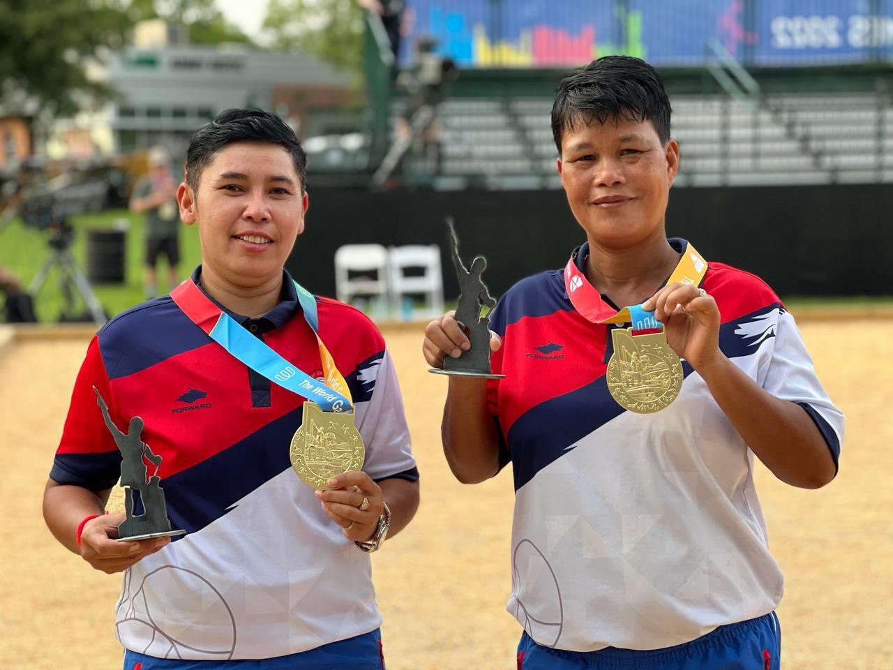 ឈានដល់វគ្គផ្ដាច់ព្រ័ត្រ កីឡាការិនីឆ្នើមរបស់កម្ពុជា អ៊ុក ស្រីមុំ និង អ៊ុន ស្រីយ៉ា បានធ្វើឲ្យក្រុមកីឡាការិនីបារាំង Nadege BAUSSIAN និង Caroline Marie BOURRIAUD ខកចិត្តវិញ បន្ទាប់ពីក្រុមកម្ពុជា សងសឹកបានវិញ ជាមួយការយកឈ្នះក្នុងលទ្ធផល ៧-៥ពិន្ទុ ដើម្បីគ្រងមេដាយមាស លើវិញ្ញាសាវាយគូនារី ២នាក់ ទល់ ២នាក់ នៃព្រឹត្តិការណ៍ The World Games 2022 នៅអាមេរិក ដ្បិតកាលពីវគ្គសន្សំពិន្ទុក្នុងពូល កម្ពុជា បានចាញ់បារាំង ៩-៧ពិន្ទុ។
