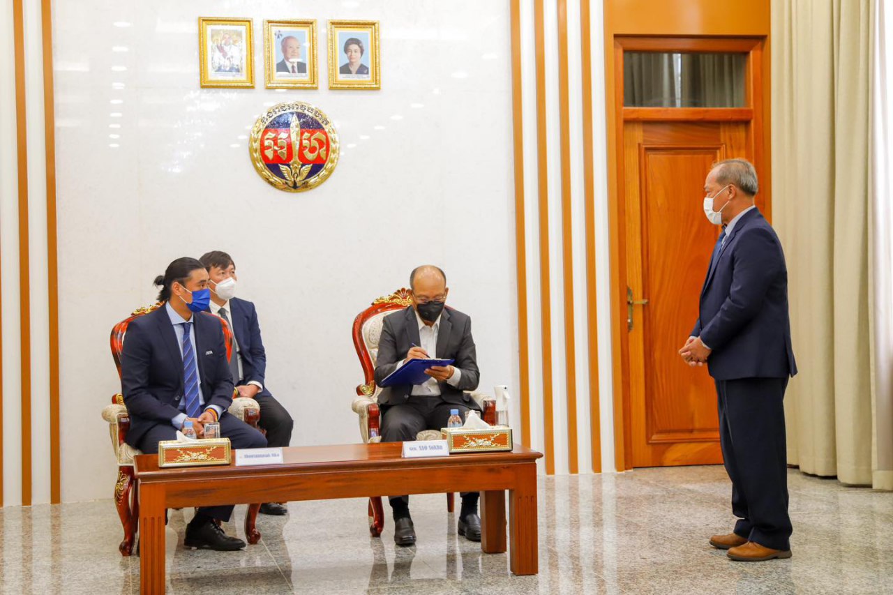 ភ្នំពេញ៖ថ្ងៃទី១៩កក្កដាម្សិលម៉ិញនេះមន្រ្តីរបស់សហព័ន្ធបាល់ទាត់ពិភពលោក (FIFA) លោក Niko Nhouvannasak អ្នកសម្របសម្រួលគម្រោងអភិវឌ្ឍរបស់ FIFA និងកញ្ញា Alexandra Huete Ramos អ្នកសម្របសម្រួលគម្រោងបាល់ទាត់តាមសាលា របស់ FIFA បានចូលជួបសម្ដែងការគួរសមចំពោះ ឯកឧត្តម សៅ សុខា ប្រធានសហព័ន្ធកីឡាបាល់ទាត់កម្ពុជា។