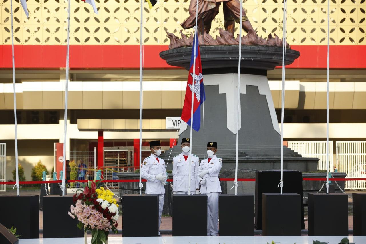 ភ្នំពេញ៖នាកីឡដ្ឋាន STADION MANAHAN នៃទីក្រុងសូឡូប្រ ទេសឥណ្ឌូនេស៊ីនាល្ងាចថ្ងៃទី២៧កក្កដា មុនព្រឹត្តិការណ៍កីឡាជនពិការប្រចាំតំបន់ លើកទី១១ ប្រារព្ធពិធីបើកការប្រកួតផ្លូវការនាថ្ងៃទី៣០ខែកក្កដានោះទង់ជាតិកម្ពុជានិងទង់ជាតិបណ្ដាប្រទេសសមាជិកនៃព្រឹត្តិការណ៍កីឡាអាស៊ានប៉ារ៉ាហ្គេមត្រូវបានប្រារព្ធពិធីបង្ហូតឡើងរួចរាល់ហើយ។
