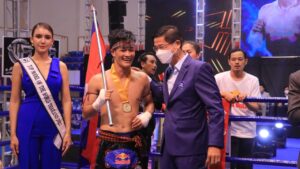 ប្រកួតលើកទី១មានការចូលរួមពីសំណាក់អ្នកប្រដាល់ជើងខ្លាំងថៃប៊ួខាវ បានចាមេឃ ។