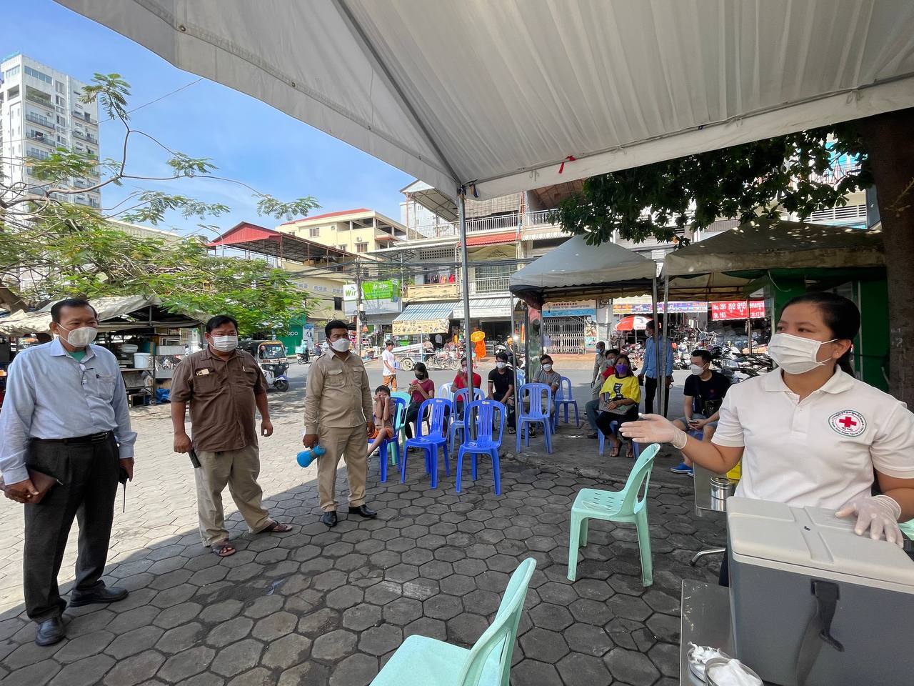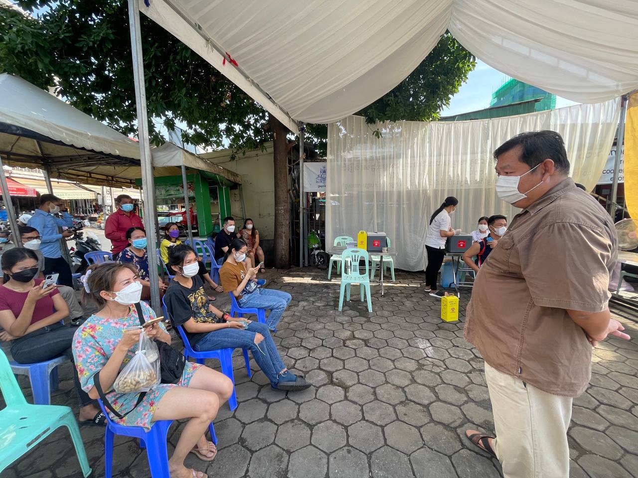 ប្រធានផ្សារនៅរាជធានីភ្នំពេញ អះអាងថា អាជីវករសឹងតែ១០០% បានចាក់ វ៉ាក់សាំងដុសទី៤និងប្រមាណ៥០%បានចាក់ដុសទី៥