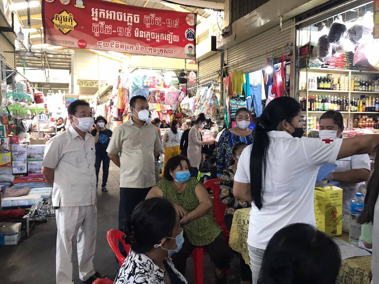 ភ្នំពេញ៖ ប្រធានផ្សារមួយចំនួននៅក្នុងរាជធានីភ្នំពេញ បានអះអាងស្រដៀងគ្នាថា ចំពោះអាជីវករលក់ដូរឥវ៉ាន់នៅក្នុងផ្សារ សឹងតែ១០០%ហើយ បានទទួល ការចាក់វ៉ាក់សាំងដុសទី៤និងមានអាជីវករប្រមាណ៥០% ដែលបានចាក់ដុសទី៥ ដើម្បីចូលរួម បង្ការ និងទប់ស្តាត់ជម្ងឺកូវីដ១៩ ទៅតាមការណែនាំរបស់សម្តេចតេជោហ៊ុន សែន នាយករដ្ឋមន្ត្រី។